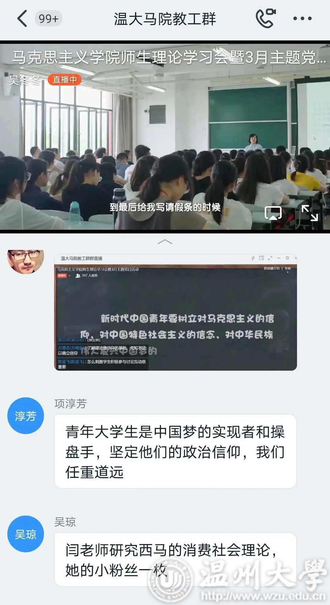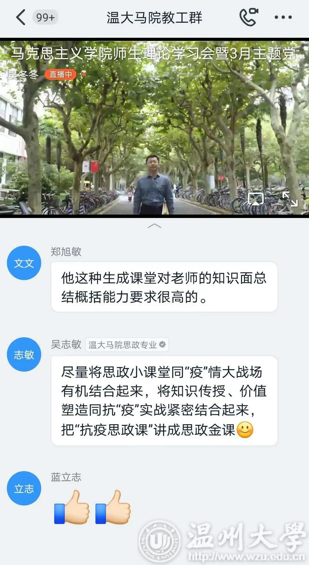 观看结束后,各个党支部随即进行了线上交流。各位党员同志结合《一堂思政课》的内容和自己所学专业,围绕“如何做好思政课教师” “如何上好思政课、发挥思政课的作用” “如何培养思政课教师后备人才” “当前思政课教学如何落实好’两手都要硬、两战都要赢’的重要精神” 等问题发表了自己的看法和心得体会。