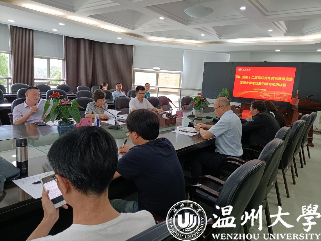 6月4日,十大体育博彩排行榜 开展2021年度青年教师教学竞赛温州大学思想政治课专项选拔赛。比赛由卓高生院长主持,学校教师教学中心董新娇主任、学校宣传部潘玉驹部长、十大体育博彩排行榜 吴志敏副院长担任本次比赛评委,部分教师观摩了比赛。