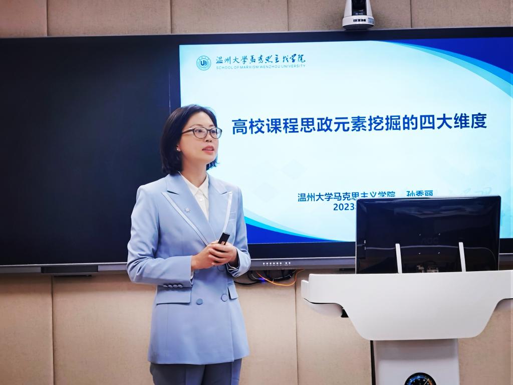 孙秀丽老师主讲的题目为《高校课程思政元素挖掘的四大维度》。她从课程思政与思政课程协同育人的难题出发,提出了四个维度:深度、精度、厚度和温度,用以挖掘思政元素。她还强调思政课教师在课程思政协同育人中的具体担当,包括育人模式和教学方法等方面,与专业课教师一同育人,以达成立德树人的根本目标。