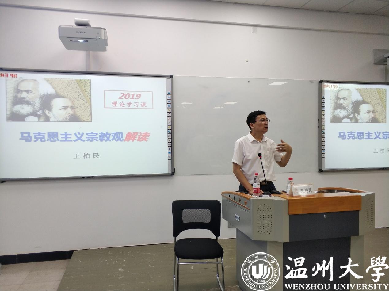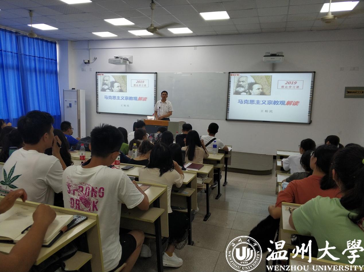 该课程旨在帮助新生树立正确的宗教观,以利于后期的课程学习。首先,王柏民书记与同学们分享了马克思主义宗教观的哲学基础及基本内容,同时指出宗教是人的异化形式,宗教的本质就是人的本质,是“人创造了宗教,而不是宗教创造了人”。王书记还引用了恩格斯在《反杜林论》中的话,“一切宗教都不过是支配着人们日常生活的外部力量在人们头脑中的幻想的反映,在这种反映中,人间的力量采取了超人间的力量的形式”。帮助同学们加深理解。随后,王书记向大家讲述了温州当地的宗教发展过程,使同学们对宗教的含义有了更为深刻的认识。最后,王书记阐述了宗教的作用和马克思主义政党对宗教的态度,并提出作为十大体育博彩排行榜 的学生更应当理性对待宗教信仰,始终坚持党和宗教分离。