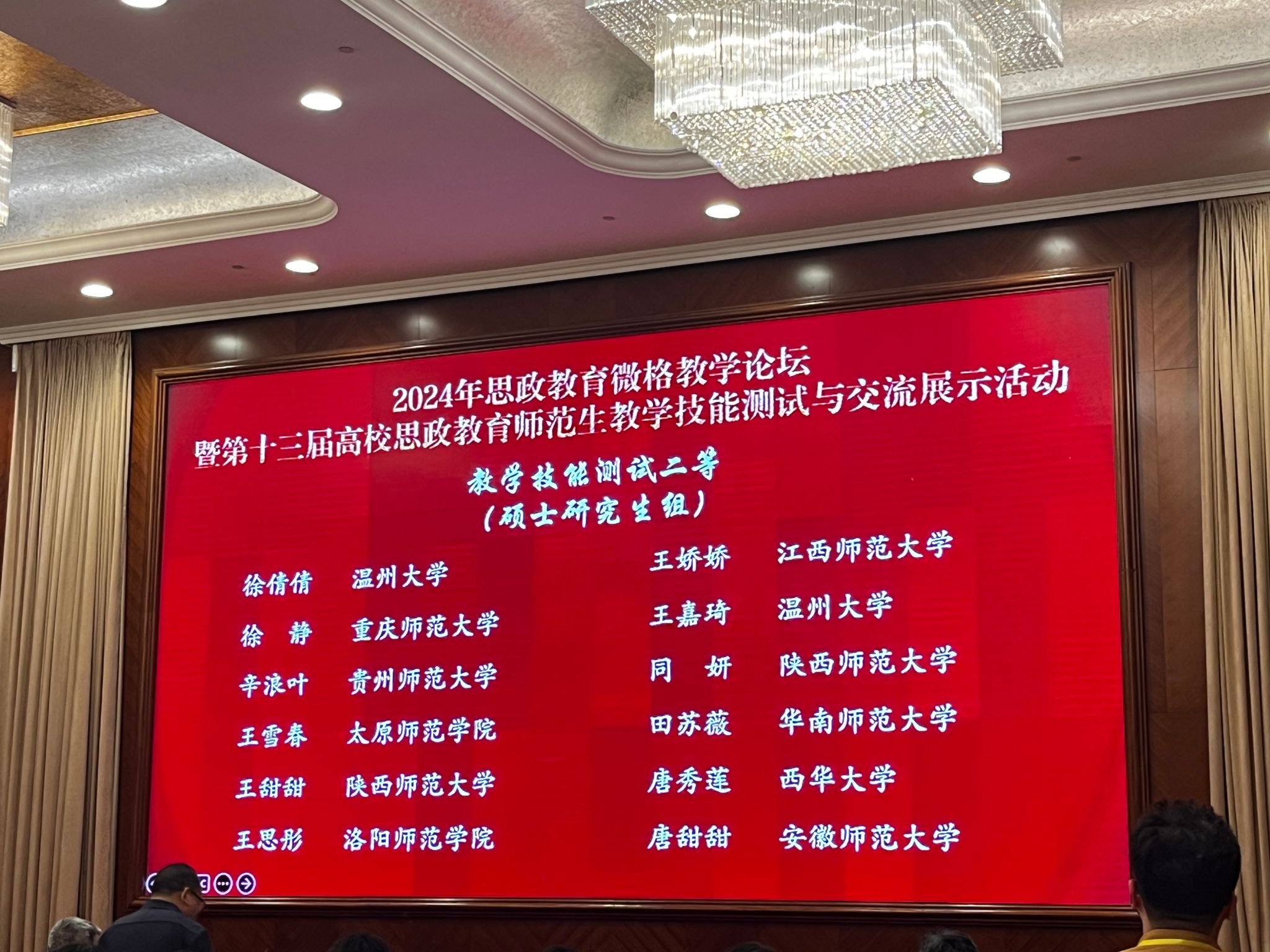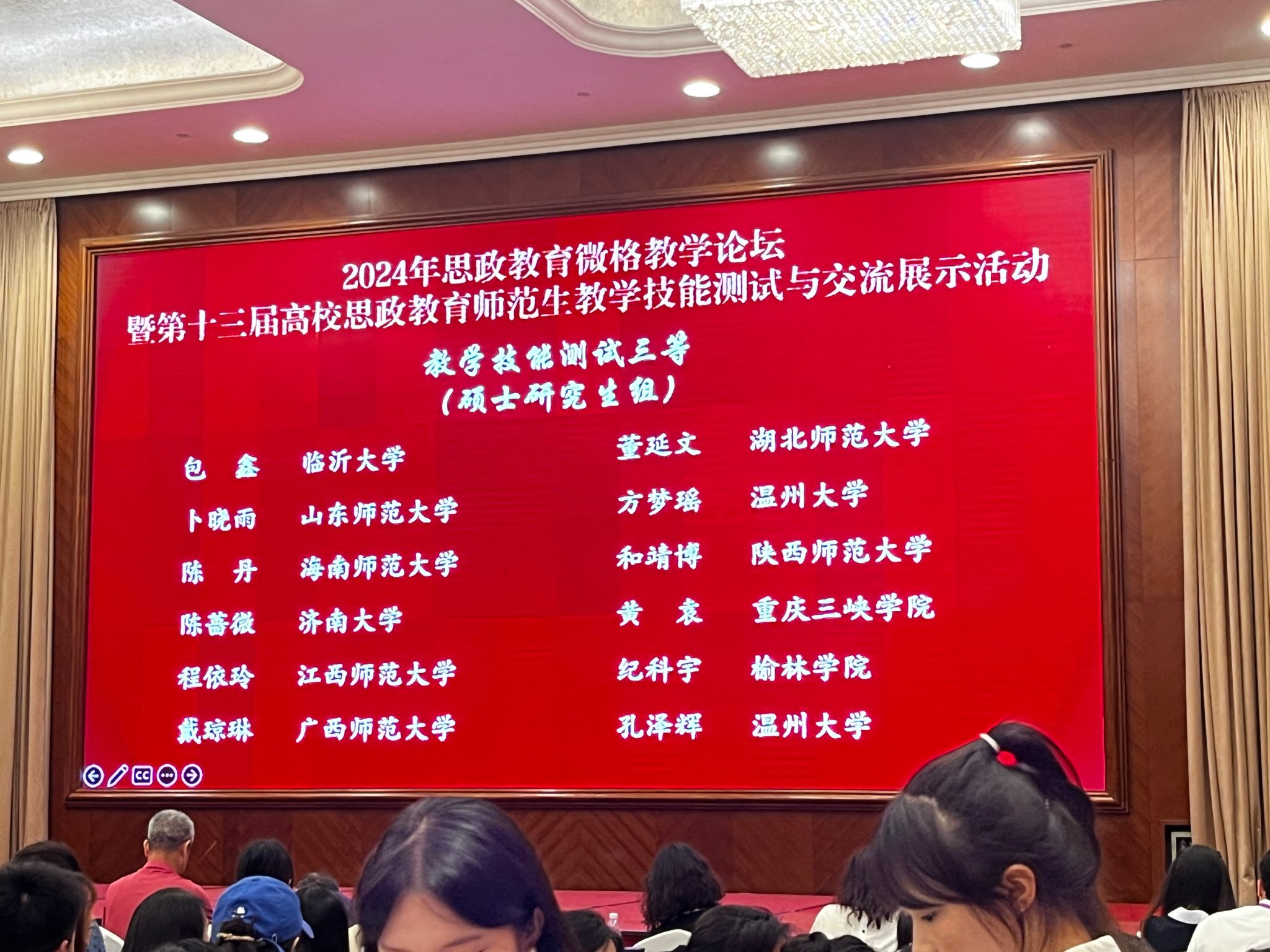 喜报:温大体育博彩学子在全国第十三届高校思政教育师范生教学技能测试与交流展示活动中斩获佳绩