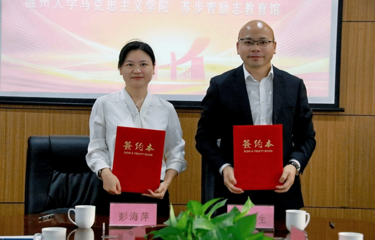 随后,双方进行签约并举行“温州大学大思政课实践教学基地”授牌仪式。卓高生老师表示,温州大学与平阳有着天然的渊源联系,从黄溯初先生办学到苏步青先生担任名誉校长再到谷超豪先生,希望未来能够继续传承温大精神,延续交流合作,借助苏步青励志馆充分发挥场馆里的思政课的重要作用,运用新时代伟大变革的成功案例,发挥红色资源育人功能,进而积极推进“场馆育人”赋能“大思政课”建设。彭馆长表示,平阳县苏步青励志馆作为首批科学家精神教育基地,十分期待未来与十大体育博彩排行榜 的教育合作,鼓励各类多样化的教学实践活动植入场馆,欢迎各位研究生同学开展以大帮小的志愿服务。