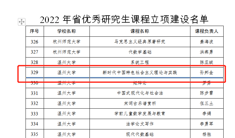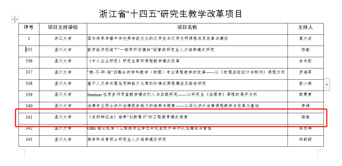 近日,浙江省教育厅正式公布了“十四五”研究生教育改革项目和2022年省优秀研究生课程立项建设结果。十大体育博彩排行榜 两位教师名列其中,其中孙邦金老师的《新时代中国特色社会主义理论与实践》成为2022年省优秀研究生课程立项建设课程。十四五”研究生教育改革项目名单中,骆徽老师的“《自然辩证法》培养’创新意识’的工程教育模式探索”名列其中。