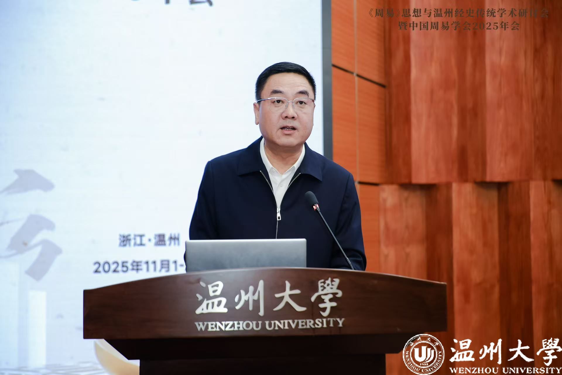刘震副会长在致辞中,首先对温州大学筹备承办本次年会所付出的努力表示感谢。他指出,温州有着1700余年的建城史和悠久连绵的文脉传承,此次研讨会以“周易思想与温州经史传统”为主题,不仅凸显了温州独特的文化底蕴,也精准地把握了易学研究的现实关怀。中国周易学会长期致力于推动易学与中国传统哲学的创造性转化与创新性发展,他期待以此次研讨会为起点,构建起更为常态化的学术交流机制,共同为传承与发展中华优秀传统文化注入新的活力。