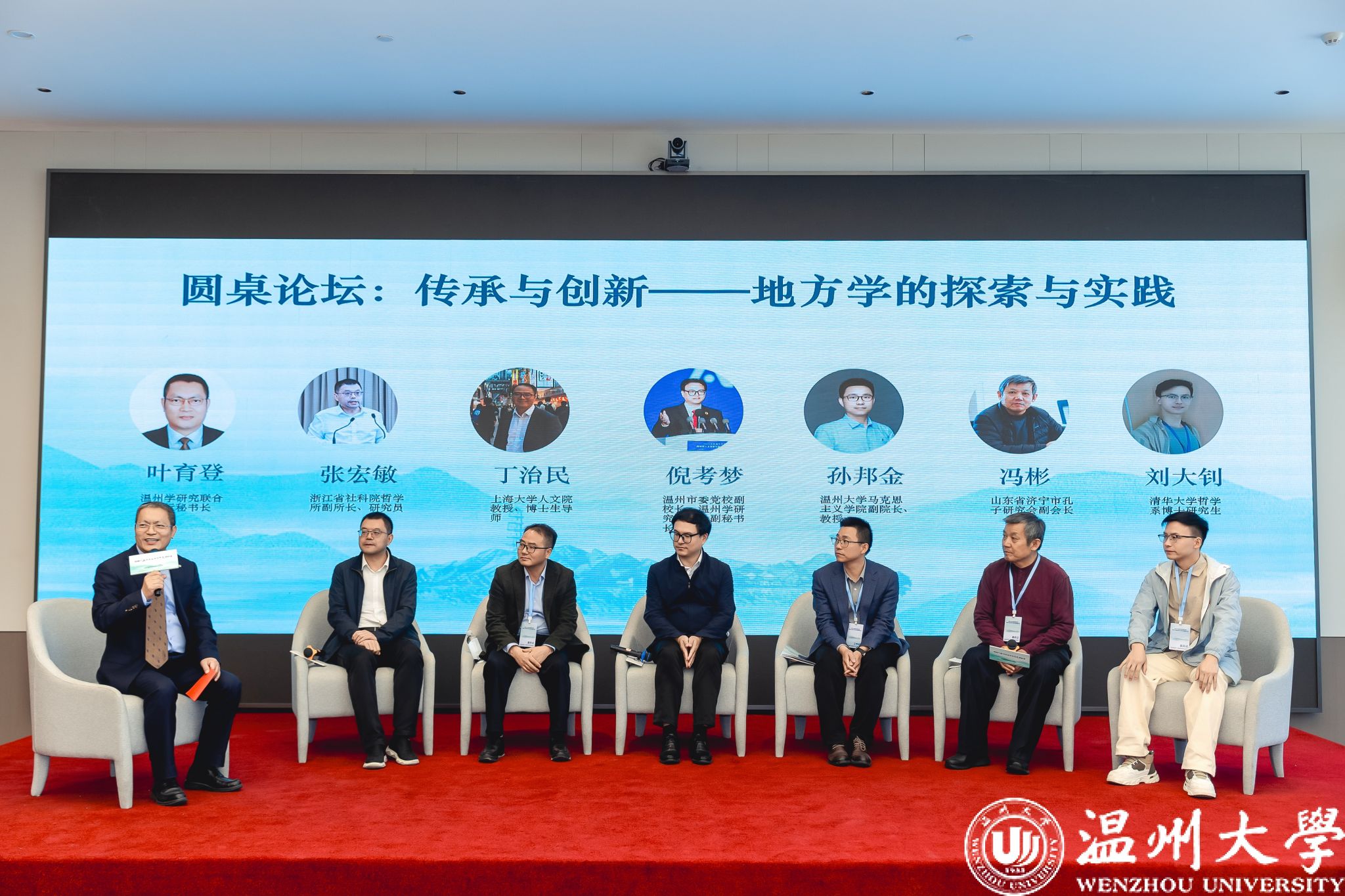 温州市温州学研究联合会执行秘书长叶育登主持了以“传承与创新——地方学的探索与实践”为主题的圆桌论坛。浙江省社科院哲学所副所长张宏敏、上海大学文十大体育博彩排行榜 教授丁治民、温州市委党校副校长倪考梦、十大体育博彩排行榜 副院长孙邦金、山东省济宁市孔子研究会副会长冯彬、清华大学哲学系博士研究生刘大钊六位嘉宾,围绕新时代温州学与浙学思想的传承、创新与发展展开了热烈而深入的对话。