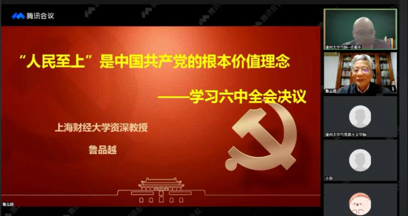 鲁老师从马克思主义唯物史观的科学方法论出发,探求中国共产党的立党根本:人民至上这一核心命题,回答了为什么我们要奉行“人民至上”,“以人民为中心”的价值观;“人民至上”与“个人自由至上”的西方意识形态,与基督教文化的根本区别;“人民至上”与西方人权观谁占据道义的制高点、真理的制高点,以及中国共产党与中国道路的成功秘籍等问题,受到与会师生的深刻认同和一致好评。(供稿人:吴琼)