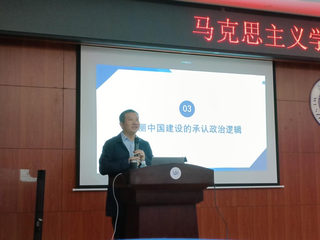 在以“美丽中国建设的政治逻辑”为题的报告中,余敏江教授对于美丽中国建设的政治逻辑展开了三个方面的阐述,并提到美丽中国建设还存在着技术方面和制度方面的逻辑。余教授首先阐述了美丽中国建设中的注意力政治逻辑,其次阐述了美丽中国建设的承认政治逻辑和责任政治逻辑,最后余教授表示对于美丽中国建设和中国生态建设等问题可以进行更加细化的研究,使理论为破解现实中的困境而服务。