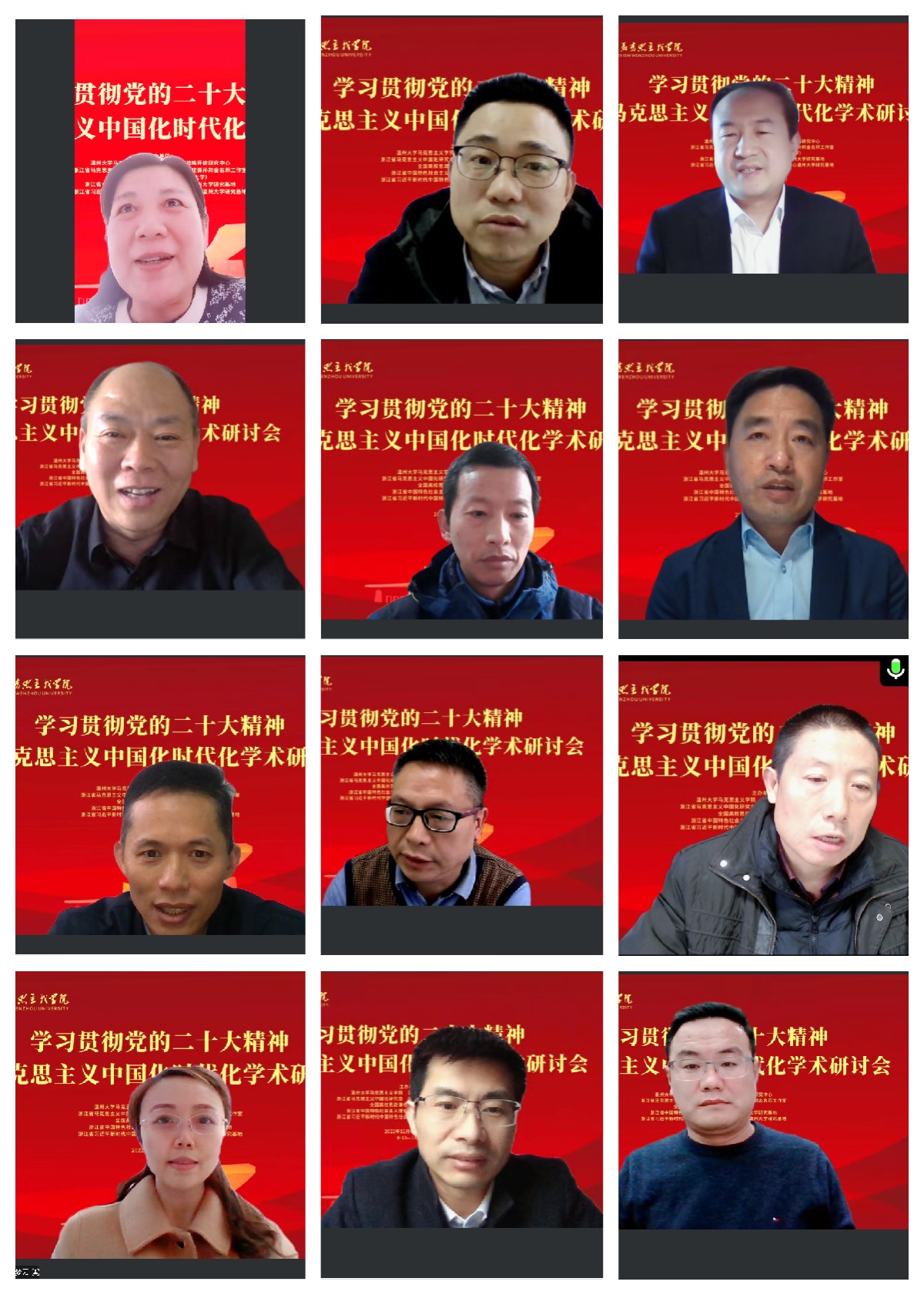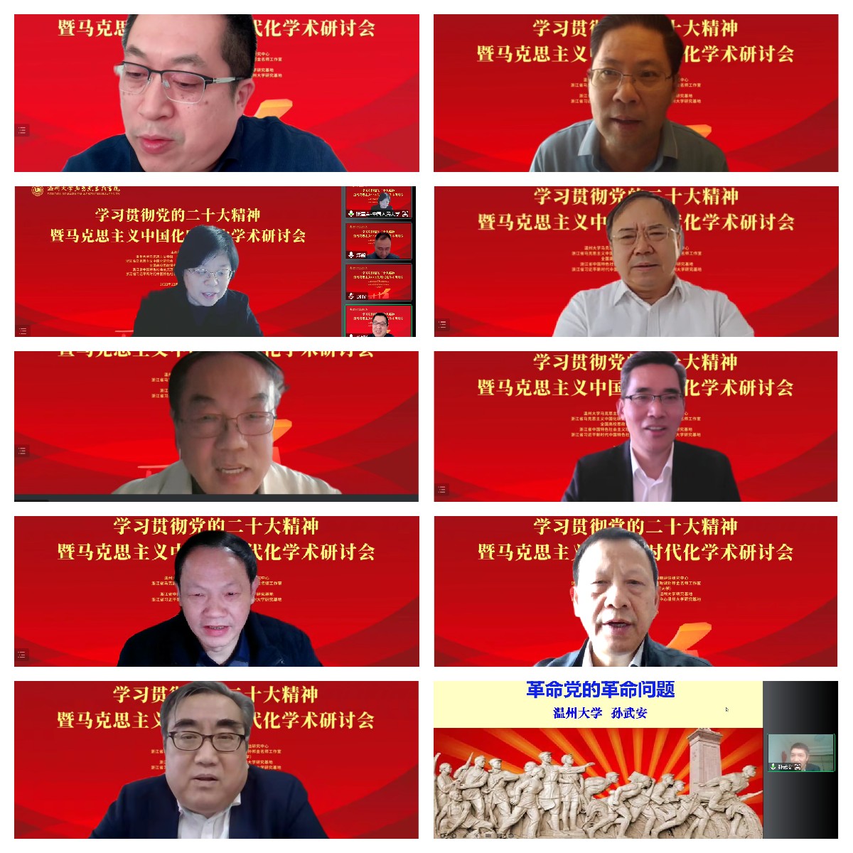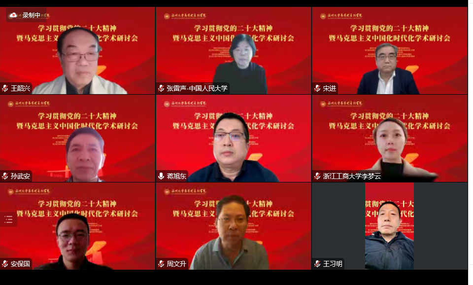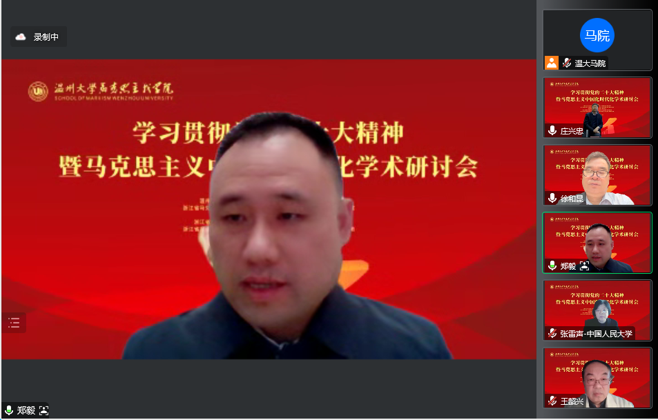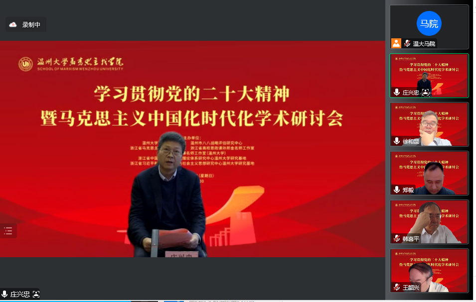 2022年12月4日,由温州大学、浙江省习近平新时代中国特色社会主义思想研究中心温州大学研究基地主办,十大体育博彩排行榜 、温州市八八战略评估研究中心、浙江省马克思主义中国化研究会、浙江省高校思政课孙邦金名师工作室、全国高校思政课名师工作室(温州大学)承办的“学习贯彻党的二十大精神暨马克思主义中国化时代化”学术研讨会(线上)在温州大学成功召开。