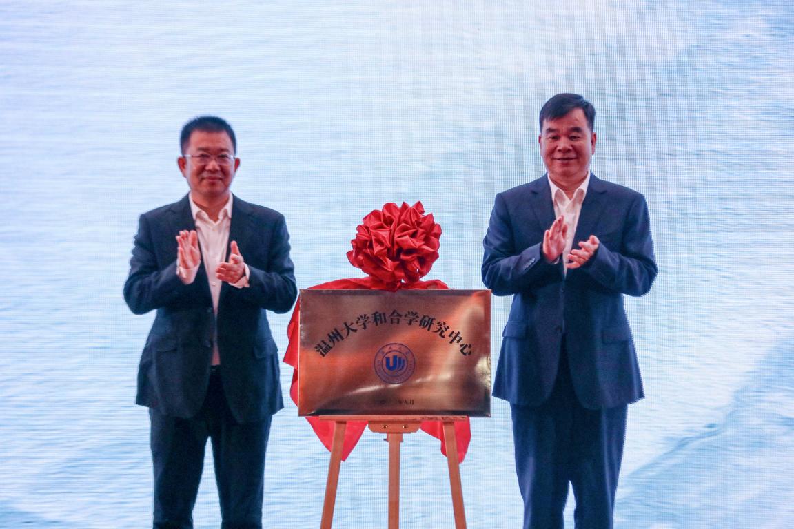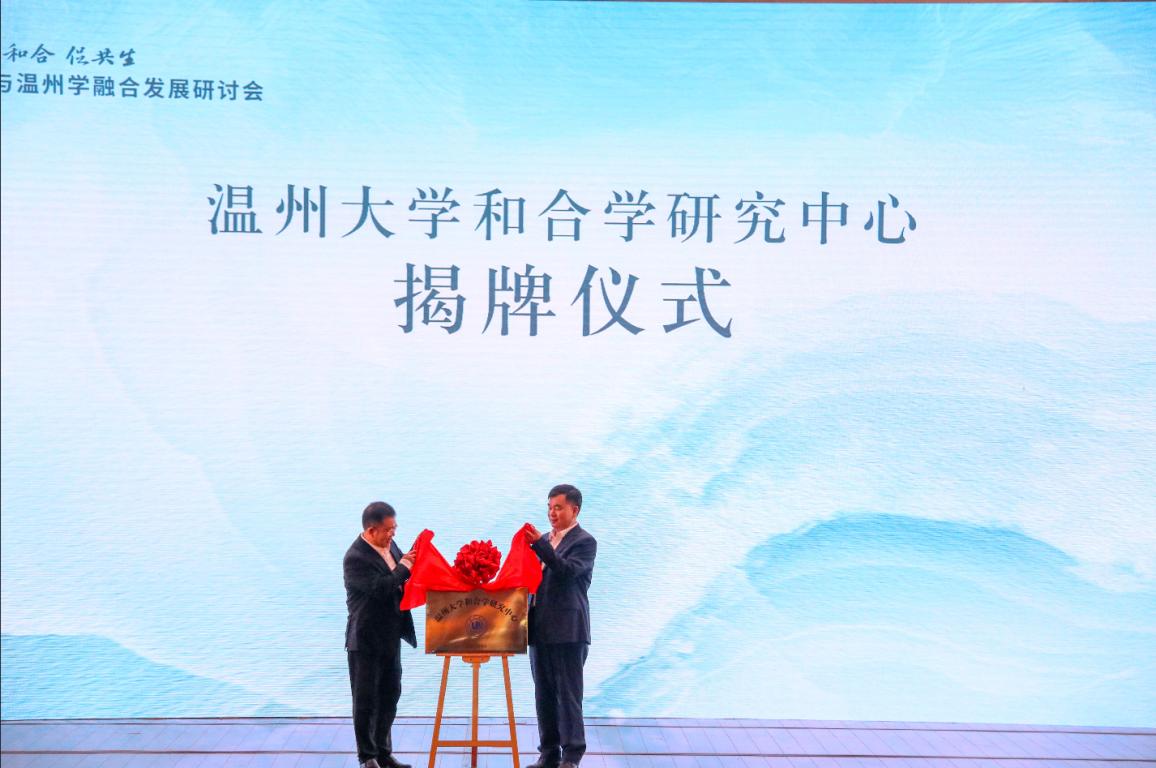 2023年10月14日上午,在“尚和合 促共生”2023和合学与温州学融合发展研讨会开幕式上,温州大学副校长徐和昆和龙湾区人大常委会主任张纯芳为“温州大学和合学研究中心”举行隆重揭牌仪式。