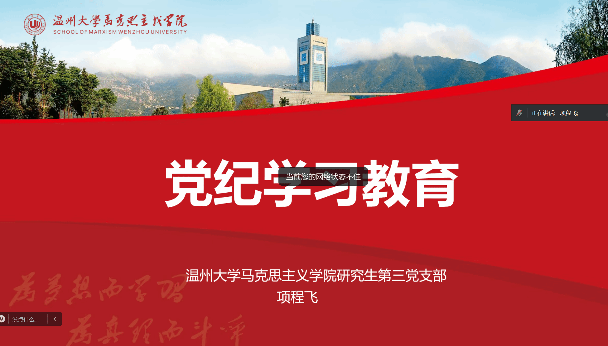 研究生第二党支部:4月25日晚上,党支部在线上召开了政治理论学习会。孙张帆同志带领支部党员学习《条例》。