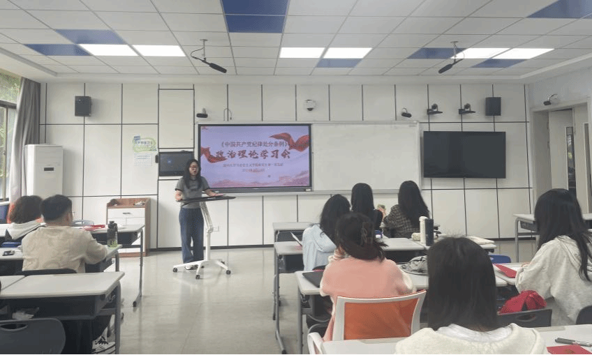 本科生党支部:4月19日下午,党支部在北校区4-304教室开展党纪学习教育主题党日活动。支部党员许颖、杨如婵、郑嘉颖同志带领全体党员进行《条例》学习。