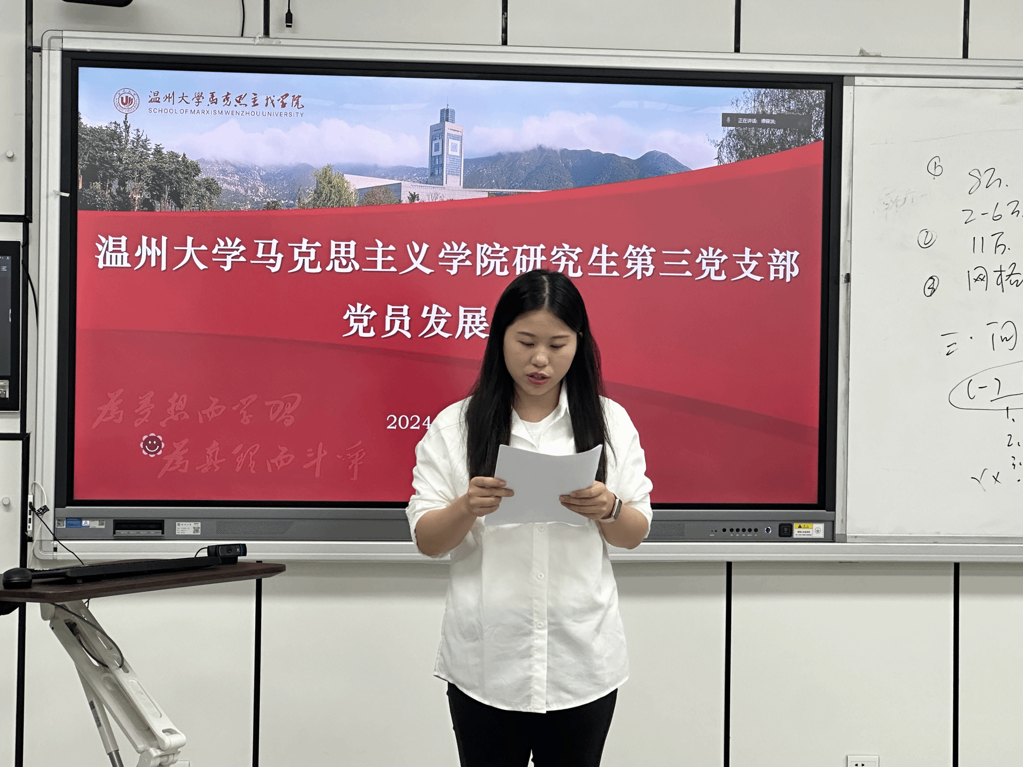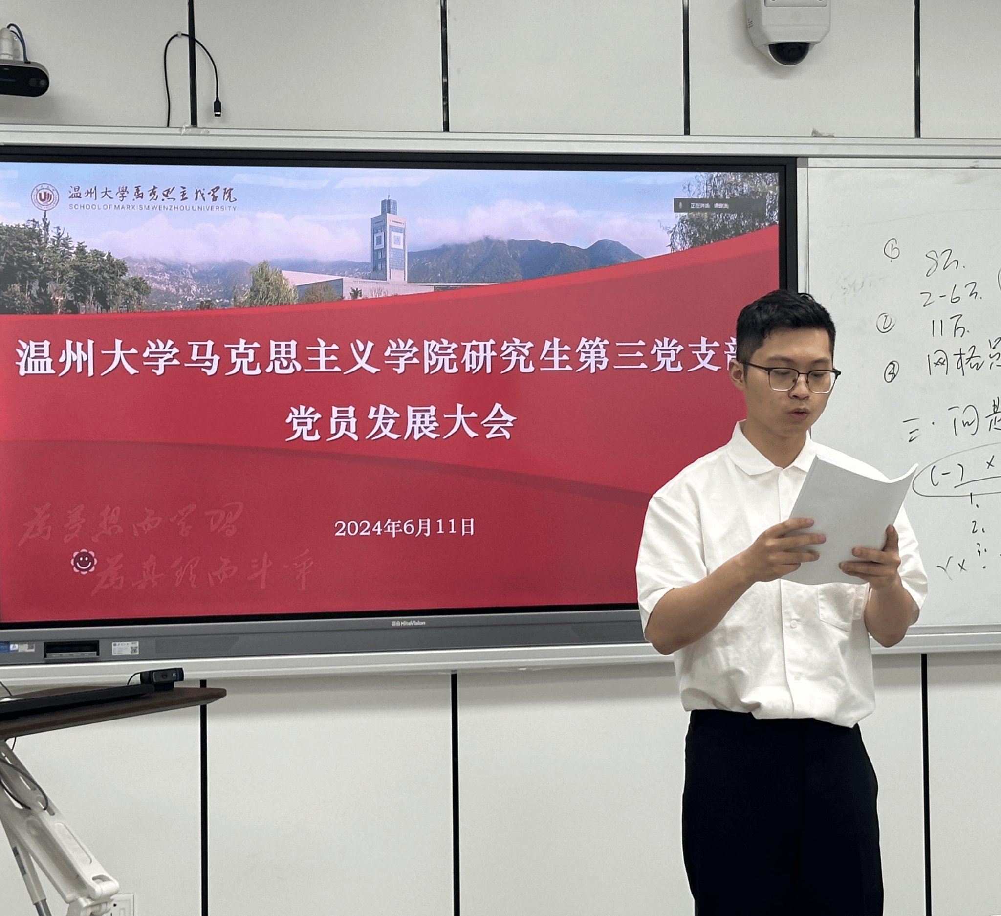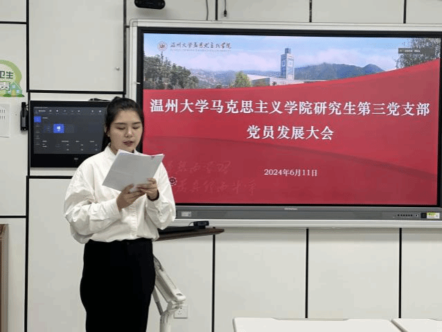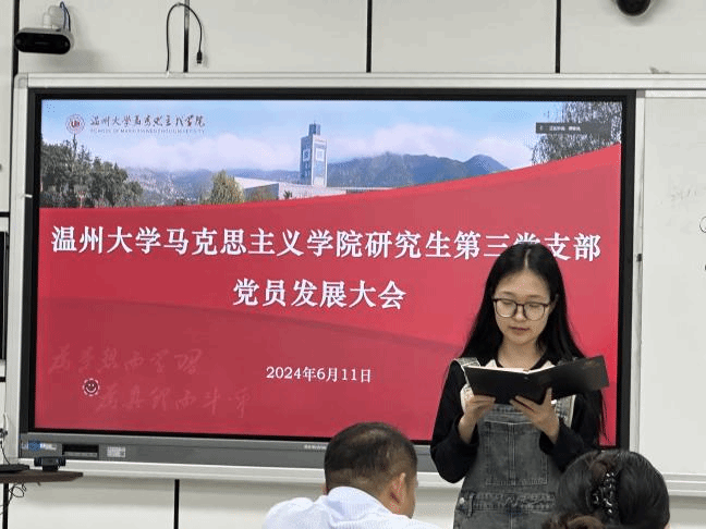 2024年6月11日下午,十大体育博彩排行榜 研究生党支部在北校瓯四—206教室召开了党员发展大会。大会主要讨论了江南、李海钰、田明鑫、李淑敏、刘丹、刘雯、苏液增、王启霖、叶泉汝、邹倩10位发展对象可否吸收加入党组织,成为预备党员的问题。体育博彩学工办主任曹开秋同志以及体育博彩研究生第三党支部全体研究生党员参加了此次大会。大会由党支部书记项程飞主持。
