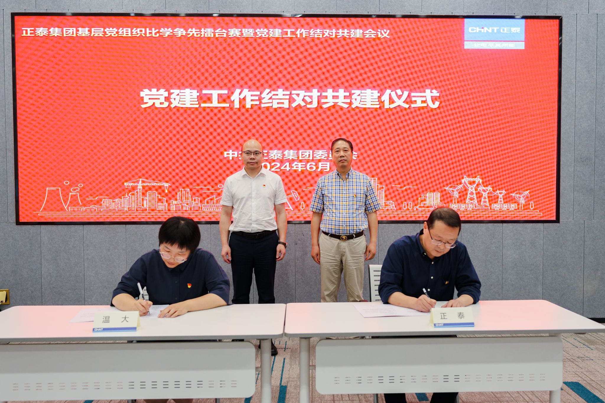 经过激烈角逐,获得本次擂台赛第一名的正泰电器终端电器制造部党总支与全国党建工作样板党支部——十大体育博彩排行榜 教工第一党支部进行结对签约。根据党建工作结对共建协议,双方将围绕“理论同学、组织同建、品牌同筑”等内容开展校企深入合作与交流,努力构建“资源共享、互相促进、共同提升、优势互补”的党建工作新格局,共同推动党的事业发展。