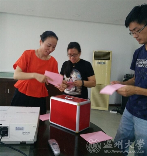 选举大会由党总支书记王柏民主持。会议依照选举程序,首先宣读并通过了《十大体育博彩排行榜 党总支选举出席中共温州大学第二次代表大会代表的选举办法》,随后,根据选举办法产生了组织执行本次选举工作的总监票人、计票人、监票人。大会以无记名投票方式,在五名候选人中差额选举产生了四名党员同志代表十大体育博彩排行榜 出席温州大学第二次党代会。