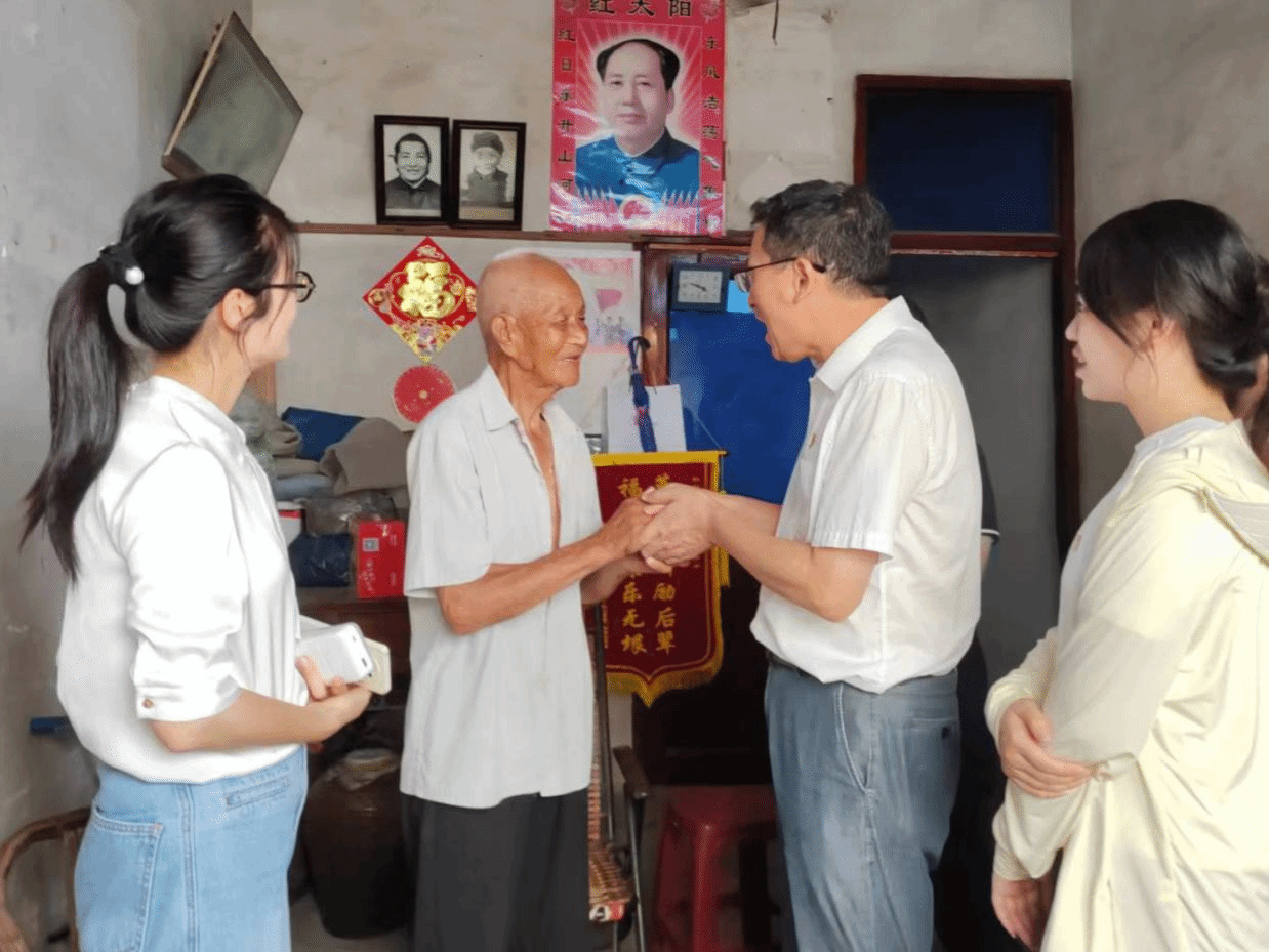 2024年7月10日,十大体育博彩排行榜 教工第一党支部、行政党支部携研究生和本科生实践队一行,满怀敬仰之情,再次踏上了前往泽雅的旅程,为向一位跨越世纪的革命老战士——周亨甫老先生表达最深的敬意与祝福。