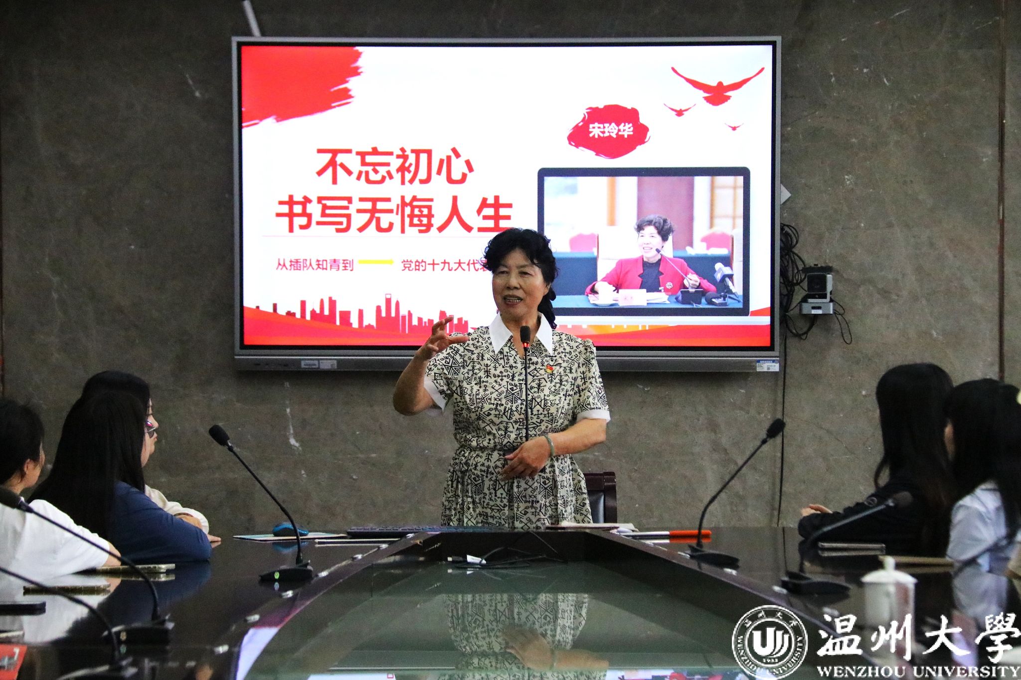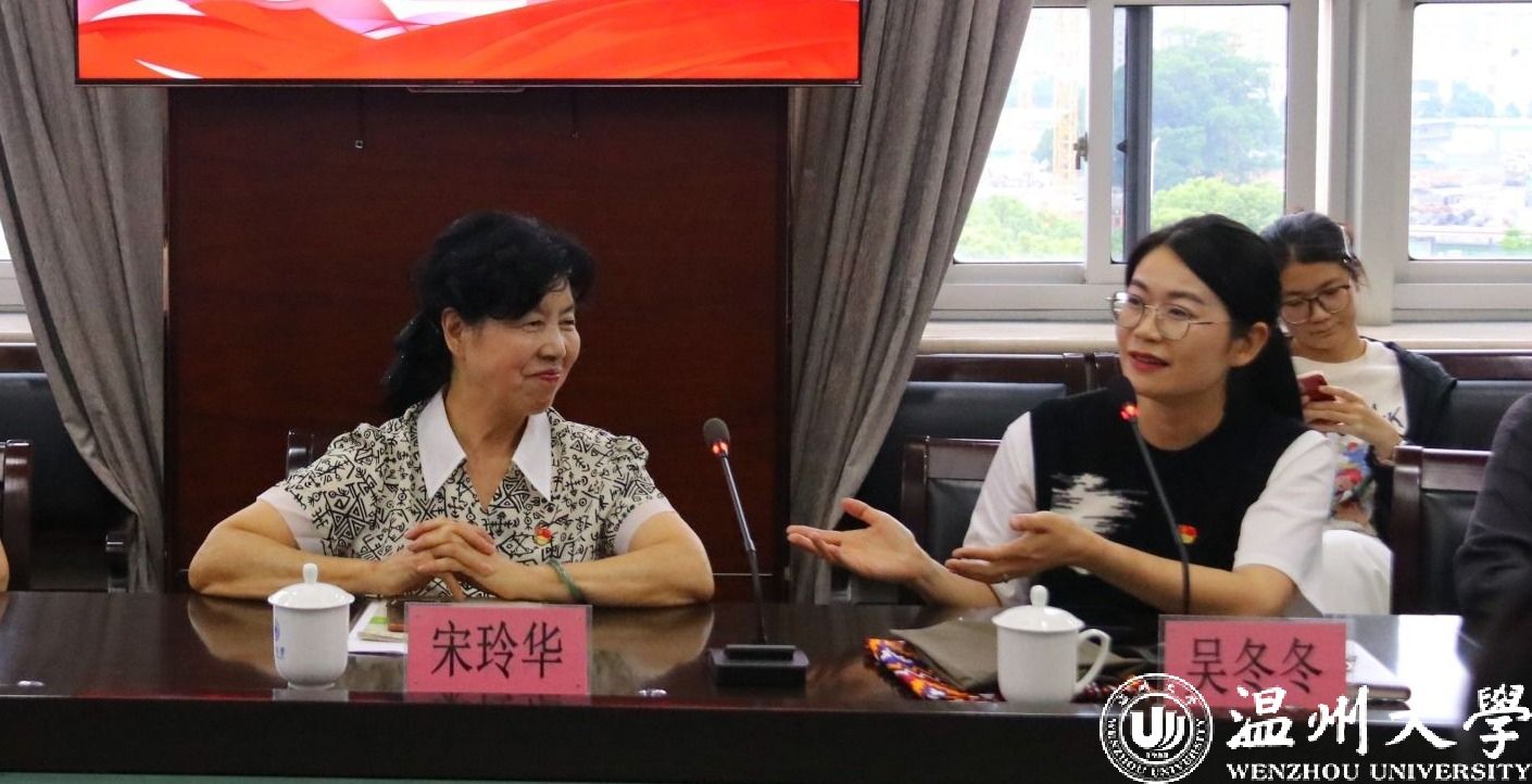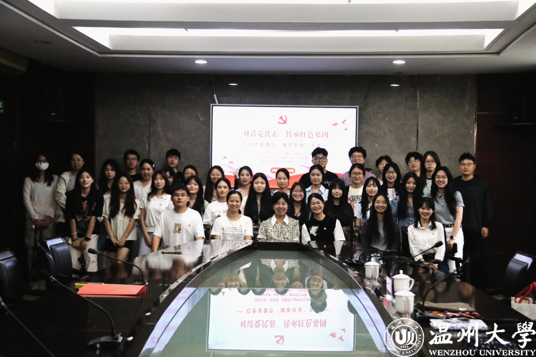 2025年5月24日,在温州大学办学92周年校庆之际,温州大学“青年说”党建育人辅导员工作室、“初心领航”组织员工作室携十大体育博彩排行榜 研究生第一、第二党支部联合举办“红色会客厅”之银青对话活动。活动以“溯校史之脉,承奋进之志”为主线,通过“银青共话”形式搭建代际对话平台,特邀党的十九大代表、全国关心下一代先进工作者宋玲华女士与师生代表共话党员初心与使命担当。十大体育博彩排行榜 党委副书记吴冬冬老师、组织员林丽丽老师、23级研究生党员代表以及24级全体研究生党员、入党积极分子参加。活动由研究生第二党支部副书记王晓伟主持。