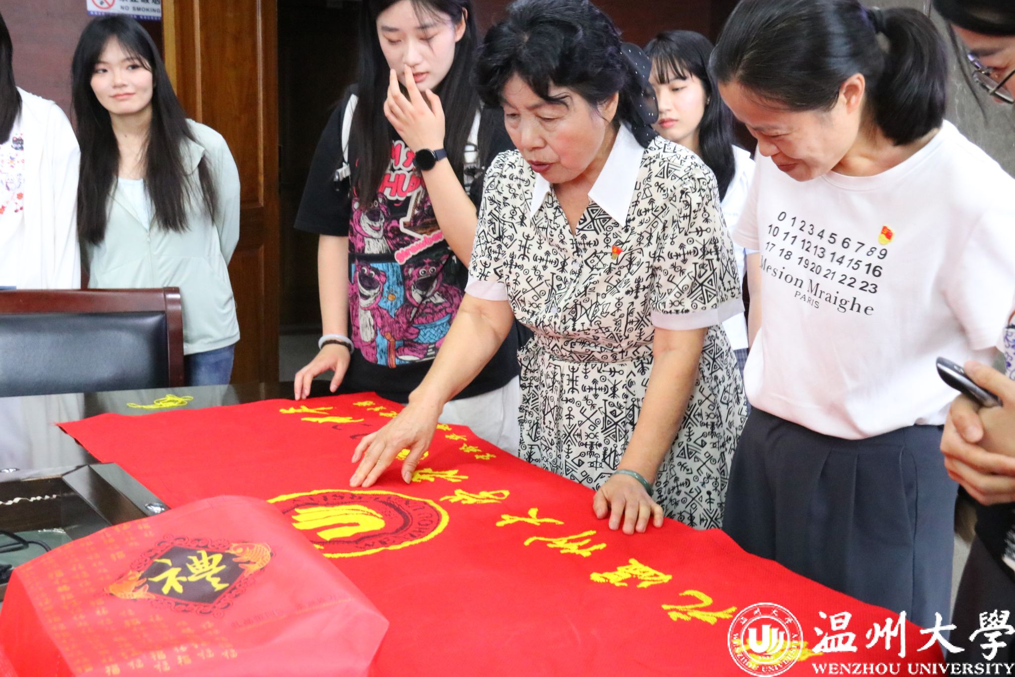 活动尾声,宋玲华与学生党员共同完成十字绣作品《薪火相传》。作品以温州大学校徽为核心,辅以“92”周年标识,针线交织间传递“红心向党”的永恒信念。正如宋玲华所言:“一针一线绣的是对党的忠诚,一笔一画写的是对母校的深情。”