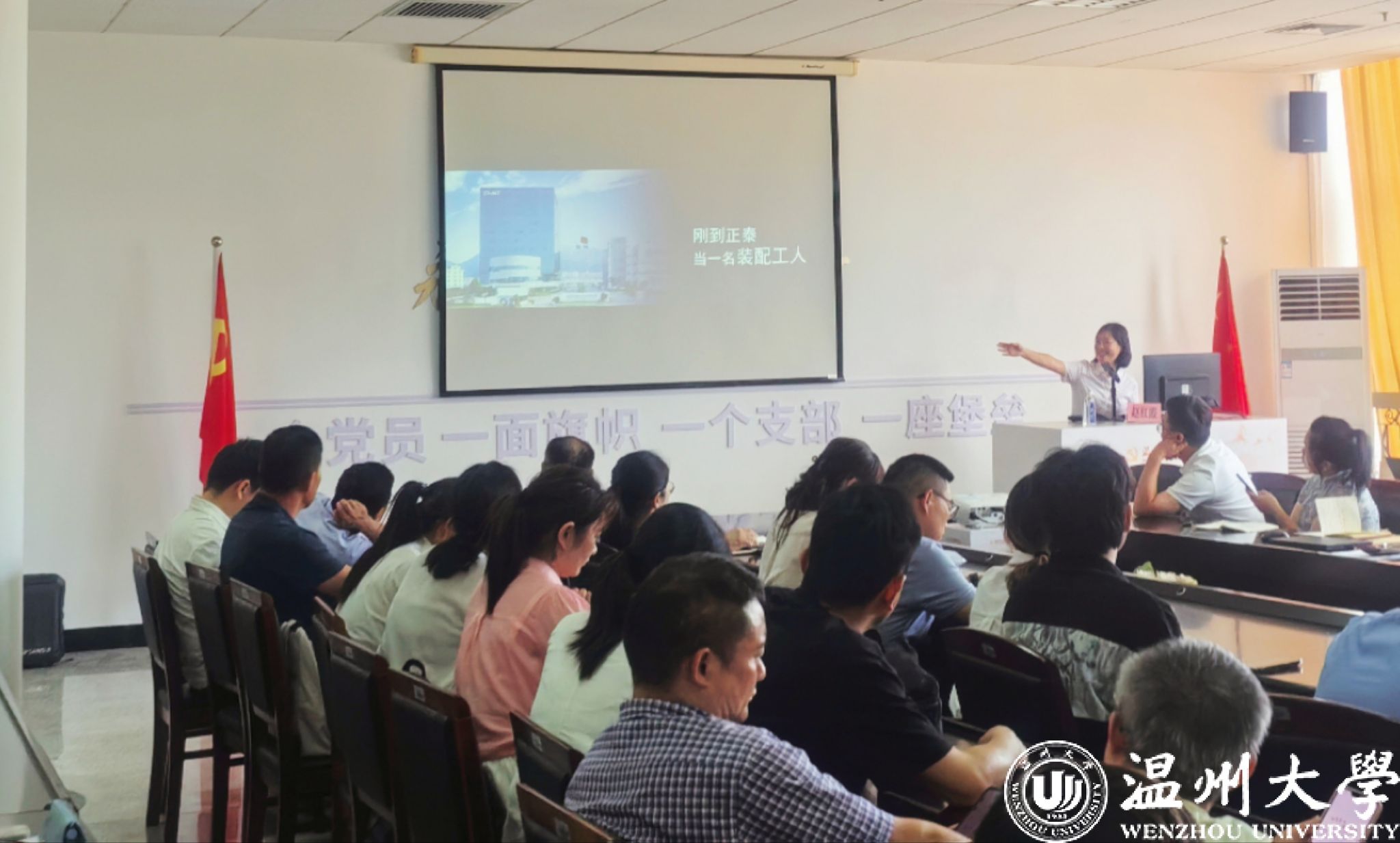 在专题党课环节,党的二十大党代会代表、正泰集团妇联副主席、浙江正泰电器股份有限公司终端电器制造部妇联主席、生产运营经理赵红霞同志以《匠心筑梦,每个人都不平凡》为主题,为全体党员上了一节深入浅出又直击心灵的党课。赵红霞同志分享了自己25年来从流水线普通装配工到党代表的蝶变历程,生动解读了精益求精的工匠精神与自立自强的奋斗精神,并引用习近平总书记的寄语——"奋斗本身就是一种幸福,只有奋斗的人生才称得上幸福的人生",勉励广大党员同志在奋斗过程中净化灵魂、磨砺意志、坚定信念,一步一个脚印,书写无悔的奋斗人生。
