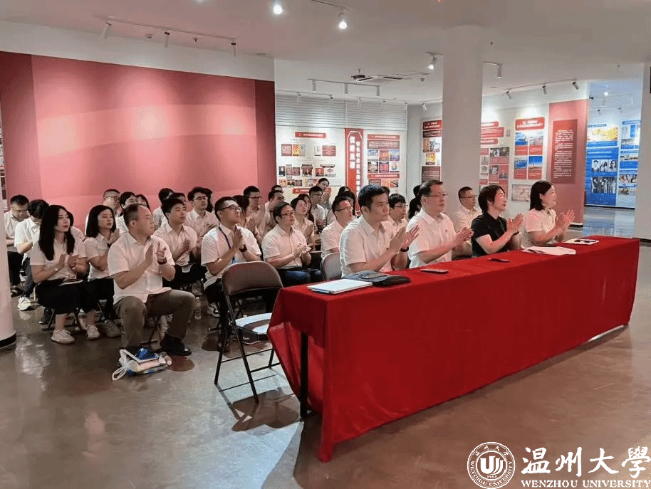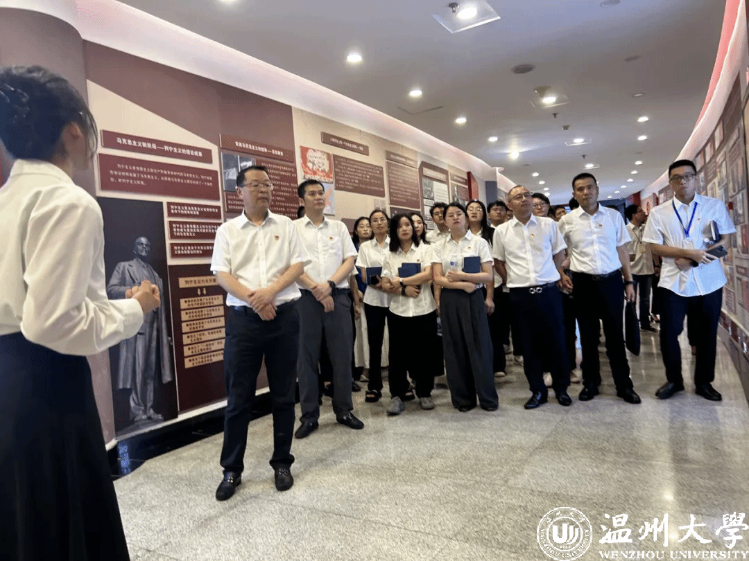 活动首站走进温州大学马克思主义理论教育基地,全体人员在讲解员的引导下,通过珍贵史料与数字化展陈,沉浸式学习红色档案里的初心故事。从《共产党宣言》首译本到温州革命斗争史,党员们在“看、听、触、思”中深化对党的理论的理解,强化“守初心、担使命”的政治自觉,筑牢信仰之基。