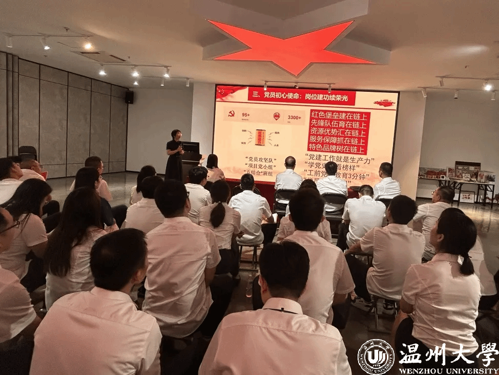 十大体育博彩排行榜 教工第一党支部书记项淳芳作《温州大学与五星红旗》专题党课。她从习近平总书记“欲知大道,必先为史”的论断切入,结合温州大学杰出校友、国旗设计者曾联松的匠人故事,阐述“小细节承载大使命”的深刻内涵。“从一页设计稿到五星红旗飘扬天安门”历史故事,让大家深刻认识到“党建强则企业强,思政兴则产业兴”的真谛。