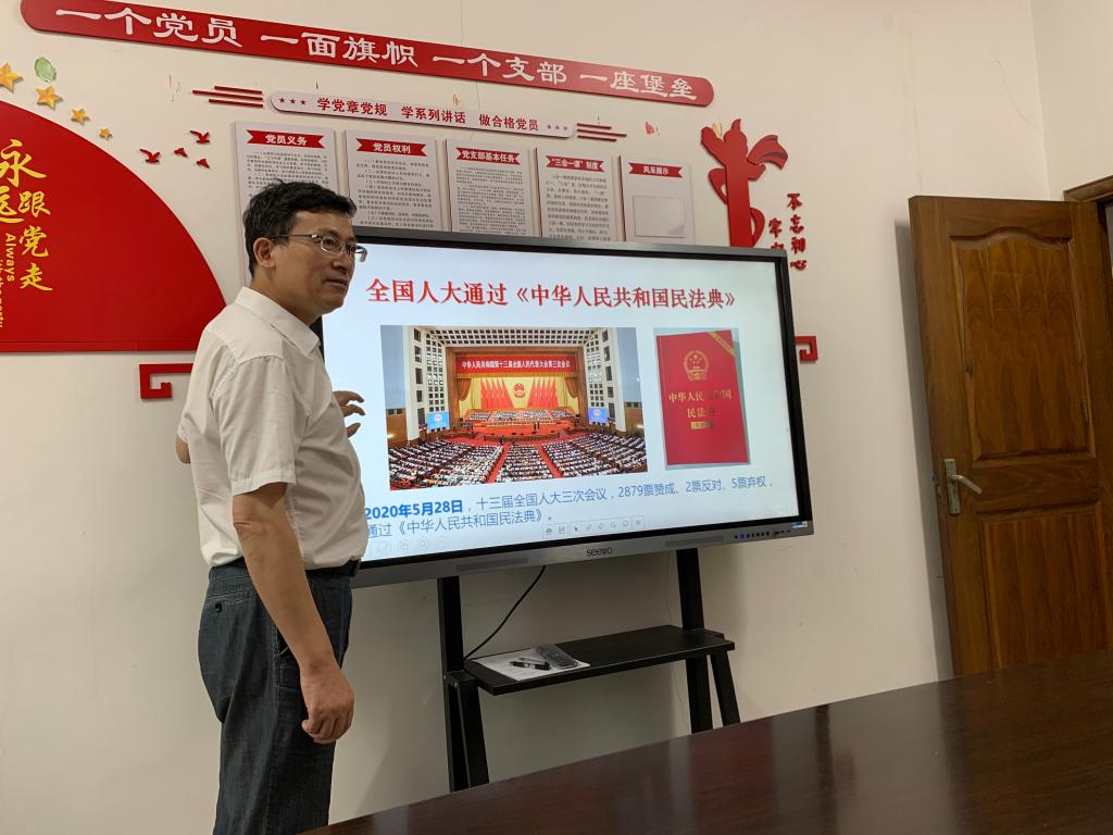 为深入学习贯彻全国“两会”精神,深刻把握今年“两会”的重大法治成果,6月24日下午,十大体育博彩排行榜 行政党支部在北校行政楼222会议室组织开展主题党日活动,专题学习《民法典》。本次支部学习,由十大体育博彩排行榜 党委书记王柏民同志作题为《中国法治新理论——以<民法典>为例》辅导报告,宣讲解读民法典。行政党支部全体党员、群众参加了学习。