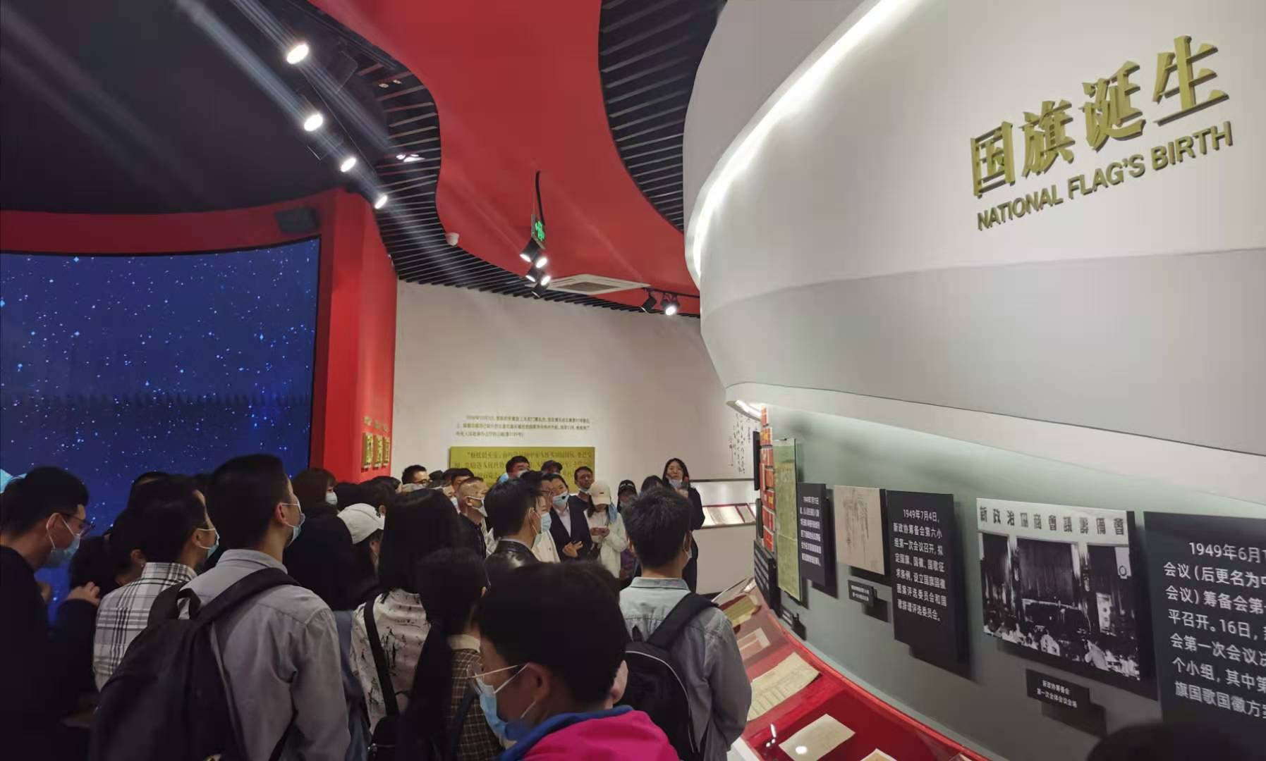 上午,带着对五星红旗的崇敬和对曾联松校友的特殊情缘,师生党员首站参观了位于瑞安市西山之巅的国旗教育馆。作为全国首家综合性国旗教育馆,在细节设计上具有特殊含义:场馆建设高度为19.49米,象征中华人民共和国成立于1949年;馆前升旗杆高20.19米,代表开馆时是中华人民共和国成立70周年。在解说员的带领下,大家参观了国旗诞生厅、国旗知识厅、国旗荣耀厅、瑞安发展厅,并对展馆内陈列的照片、文件、影像资料等进行了仔细阅览,学习领会了五星红旗的由来、深刻涵义及《国旗法》,还就感兴趣的史料展开讨论,并参与了3D科技的互动体验。师生党员见证着“一旗、一人、一馆、一城”所承载的共和国的历史性飞跃和瑞安这座千年古县的精彩蝶变以及背后蕴含的中国精神、中国力量、温州人精神,感悟着优秀校友曾联松先生的满腔爱国热忱和对信仰的不懈追求。面对鲜艳的五星红旗——今天每一个中国人心中最美的永恒,我们相信“如果梦想有颜色,一定是国旗上的红”!