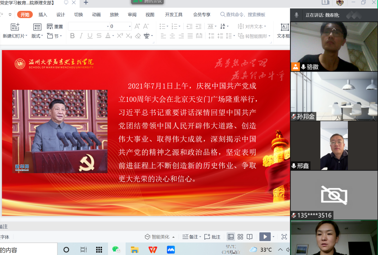 根据市和学校党史学习教育领导小组办公室部署要求,围绕“学党史、悟思想、办实事、开新局”为主题,认真贯彻“学史明理、学史增信、学史崇德、学习力行”要求,十大体育博彩排行榜 原理党支部在8月28日下午,以腾讯会议方式在线上召开了专题组织生活会,交流学习体会,查找差距不足,引导广大党员不断增强“四个意识”、坚定“四个自信”、做到“两个维护”。
