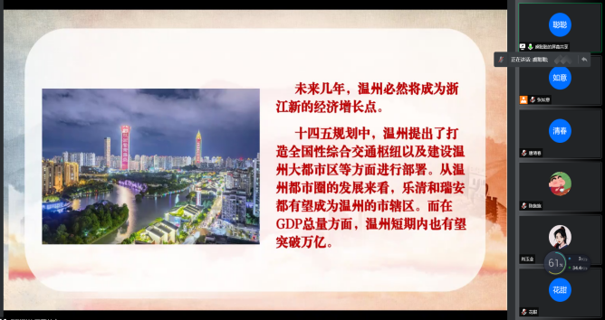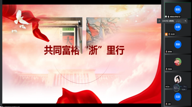 紧接着,虞聪聪同志带来主题为《共同富裕“浙”里行》的微党课。内容简要讲述了共同富裕的由来以及为何要选择浙江省作为共同富裕示范区。作为浙江青年,我们更是要为浙江省高质量发展建设共同富裕示范区贡献青春力量。增强做中国人民的志气、骨气和底气!