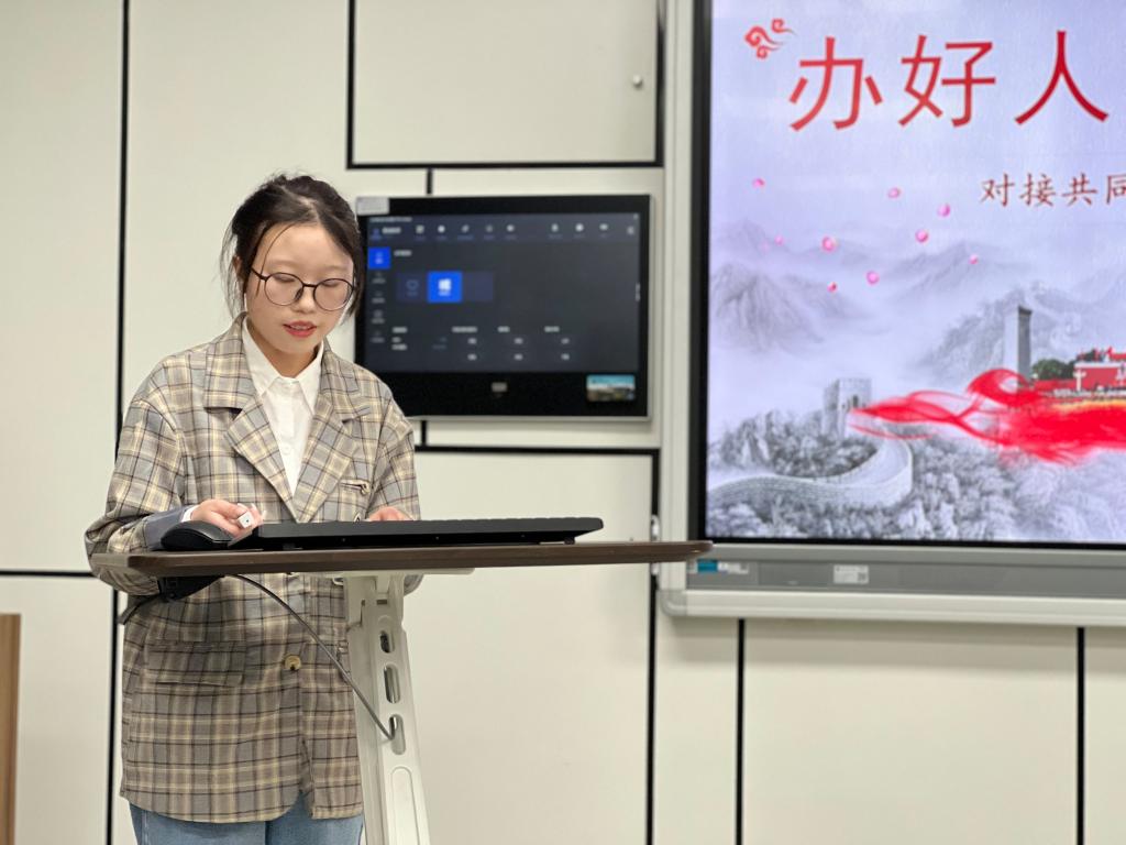 比赛伊始,主持人唐清春同志宣读比赛规则,并带领全体党员共同观看焦点访谈节目,了解浙江省被选作共同富裕示范区的原因以及取得的经验成果,使党员同志对共同富裕有了更深的认识。紧接着,五位参赛选手以“喜迎二十大 奋进新时代”为主题,紧扣“幸福”“拼搏”“创新”“奋进”的关键词,分别以《点亮幸福的眼睛》、《办好人民满意的教育——对接共同富裕,打造浙里优学》、《迎难而上,永不言弃》、《奋进行新时代·幸福向未来》《太行新愚公,照亮时代新路》为题,利用多媒体设备图文并茂、形象生动地展现自我风采,讲述时代故事,激发了观众的强烈共鸣。