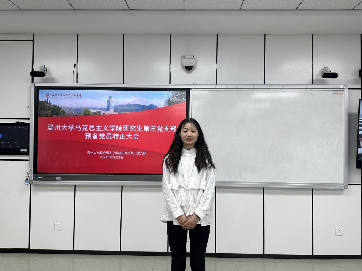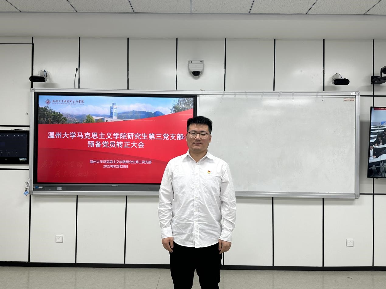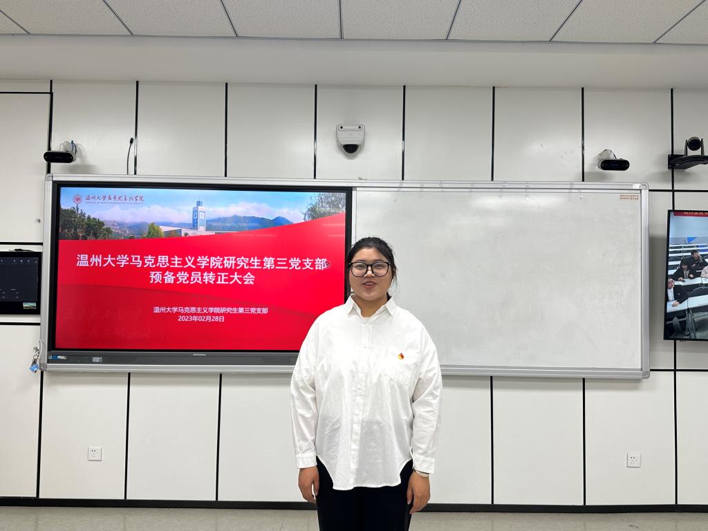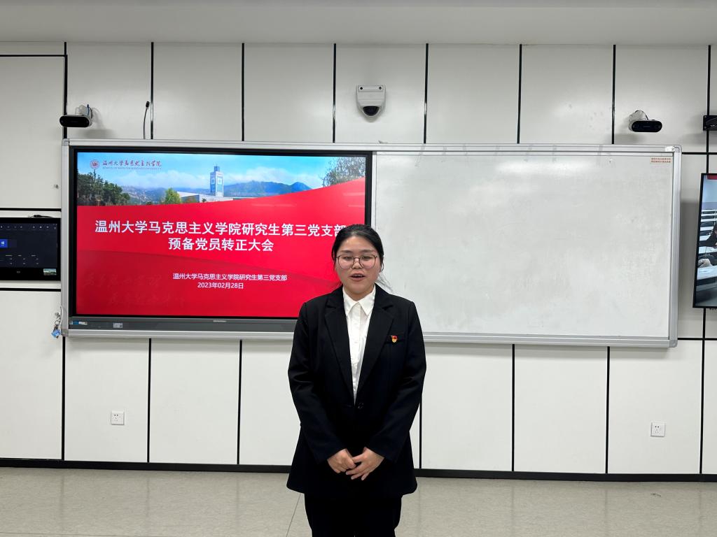 2023年2月28日晚,十大体育博彩排行榜 研究生第三党支部在北校瓯4—206教室召开2023上半年预备党员转正大会。会议由党支部书记项程飞同志主持,研究生第三党支部全体党员参会。