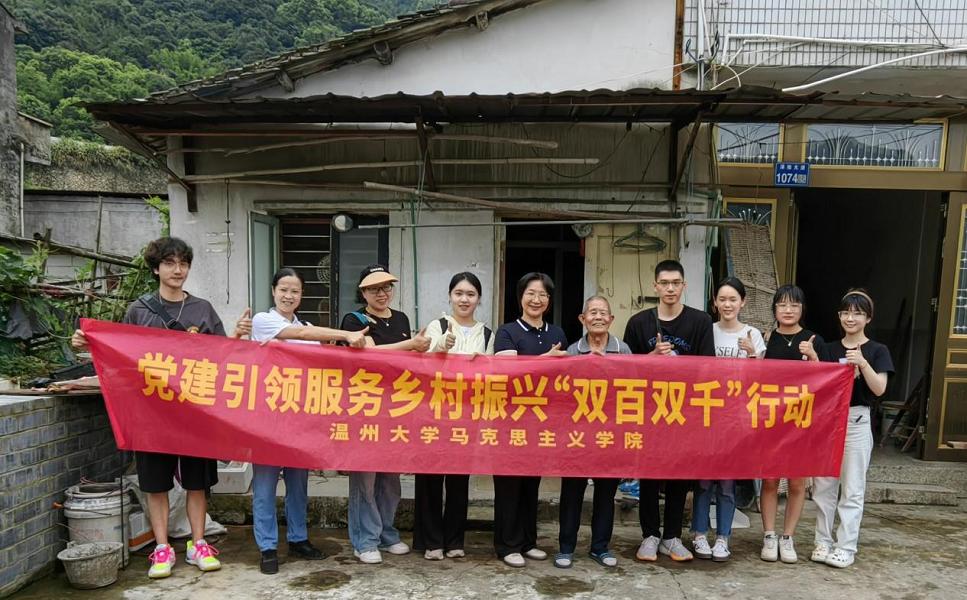 2023年8月8日,十大体育博彩排行榜 教工第一党支部书记项淳芳老师带领十大体育博彩排行榜 全国样板支部工作专班老师和研究生一行,赴瓯海区泽雅镇周岙村,通过实地考察、问卷调研、人物访谈等形式,深入了解泽雅镇周岙村的革命文化。