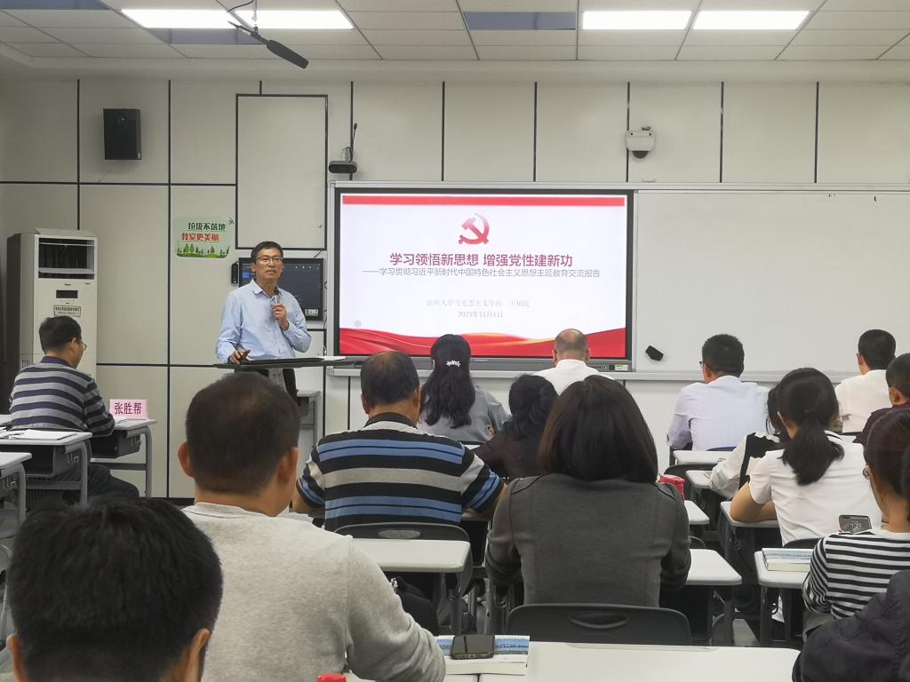 在讲课过程中,王柏民书记结合学校、十大体育博彩排行榜 事业发展的实际,与全体师生分享了自己的体会。第一、十大体育博彩排行榜 的高质量发展恰逢好机遇。从国际国内形势大环境来看,当前我们正处在一个大有可为的历史节点,国家高度重视马克思主义理论学科建设和人才培养。从学校和十大体育博彩排行榜 小环境看,学科发展、专业建设、师资队伍和条件保障等方面都为高质量发展奠定了良好基础。第二、十大体育博彩排行榜 高质量发展关键要靠高素质体育博彩人。我们要锚定冲击博士点这个最重要目标,夯实国一流专业,开展有组织科研,做优马克思主义理论教育基地,用好4号楼等资源,特别是要干部带头,用一流党建打造一流队伍,努力做到习近平总书记提出的思政课教师“六个要”素养,建好团结体育博彩、活力体育博彩。