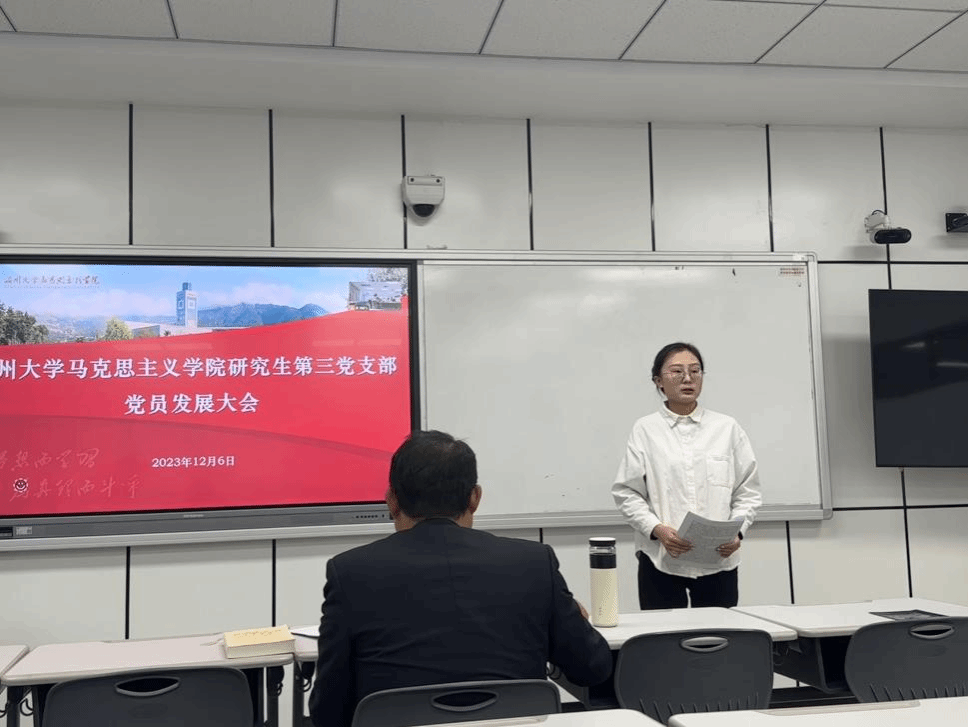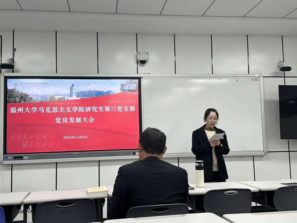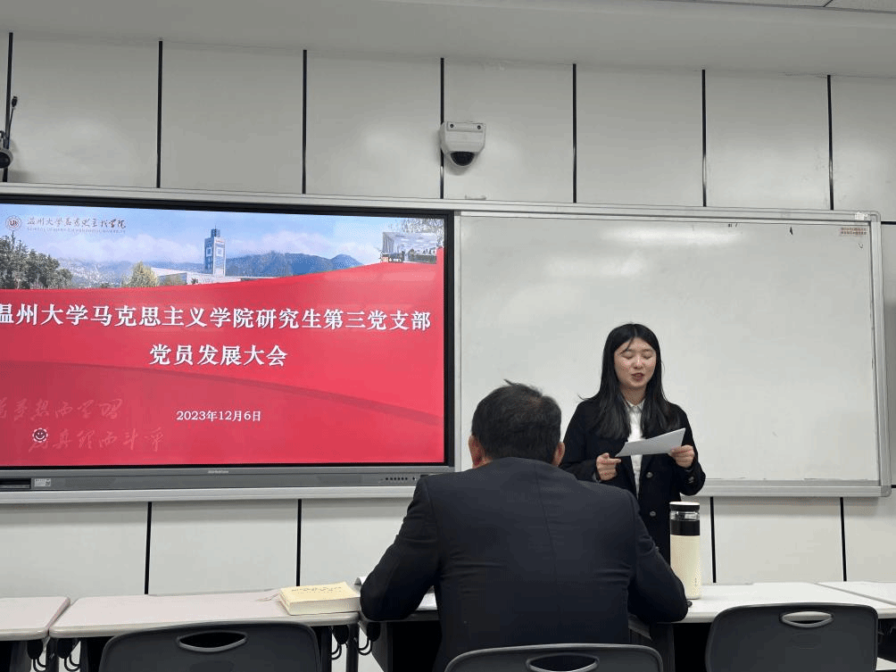 为进一步加强和推进党员队伍建设,为基层党支部注入新活力,根据《中国共产党发展党员工作细则》和《党章》等相关规定,2023年12月6日,十大体育博彩排行榜 研究生第三党支部于北校区4号楼204教室召开党员发展大会,十大体育博彩排行榜 学工办主任、研究生党支部指导老师曹开秋莅临指导。会议由党支部书记项程飞主持。全体党员与发展对象参与会议。