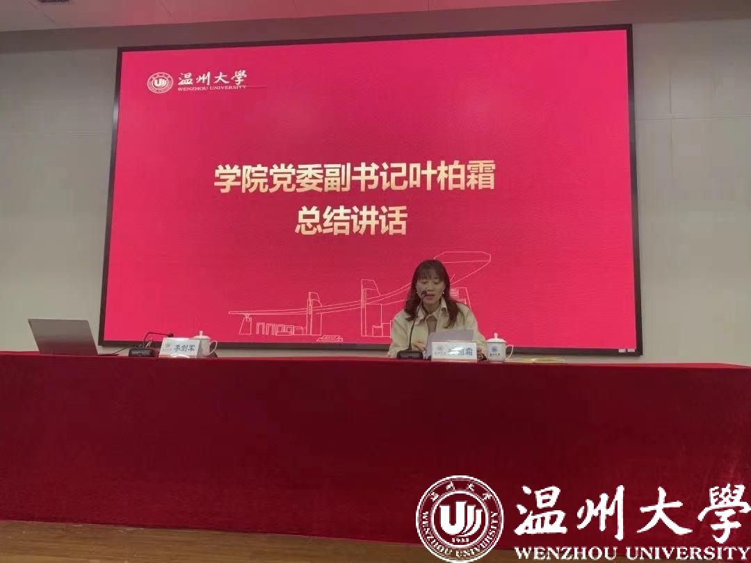 叶柏霜副书记做总结讲话。她说,学习贯彻全国两会精神,是当前的一项非常重要的政治任务。体育博彩学子要结合专业特长优势,通过多种形式深化学习,真正把握“两会”精神核心要义,进一步凝聚共识、坚定信心,厘清思路、推动发展,为十大体育博彩排行榜 学校发展贡献青春和智慧,为实现人生理想而努力奋斗。