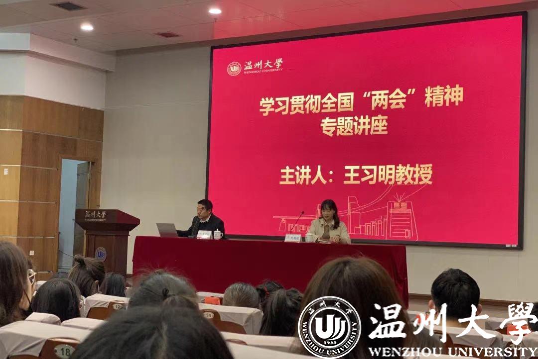 王习明教授以《开启全面建设社会主义现代化国家新征程——2021年两会精神解读》为题,从2021年全国两会召开的历史背景、主要内容、重要信号与新提法、做好新征程的开局工作等四个方面对全国两会精神进行了解读。特别是对习近平总书记在两会期间的四次重要讲话、李克强总理今年政府工作报告的重点和亮点予以了详细而生动的分析,让在座师生对全国“两会”的核心要义有了更深刻、更精准、更全面的理解。他指出,师生可进一步结合“两会”精神、党的十九届五中全会精神、习近平总书记系列重要讲话精神和自己的本职工作、学习任务进行深入学习,明确国家战略意图和自己的历史使命、责任担当,齐心协力、开拓进取,以优异成绩庆祝中国共产党百年华诞,为实现中华民族伟大复兴的中国梦不懈奋斗!