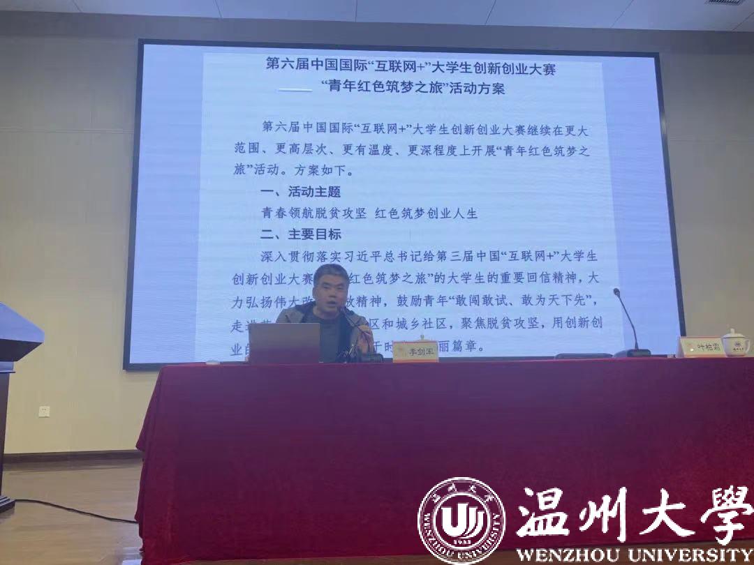 施院长首先对学校创新创业工作的概况进行说明,对今年互联网+大赛的整体情况进行介绍,尤其针对在青年筑梦红旅赛道,体育博彩师生如何围绕脱贫攻坚成果巩固、乡村振兴、社会治理、建党百年等热点难点问题进行调研分析 ,真正发挥体育博彩师生调查研究、建言资政的专业优势,推动革命老区、贫困地区、城乡社区经济发展和社会发展。施院长还对红旅赛道及其项目的评审要点、大赛的奖励激励机制进行阐述。