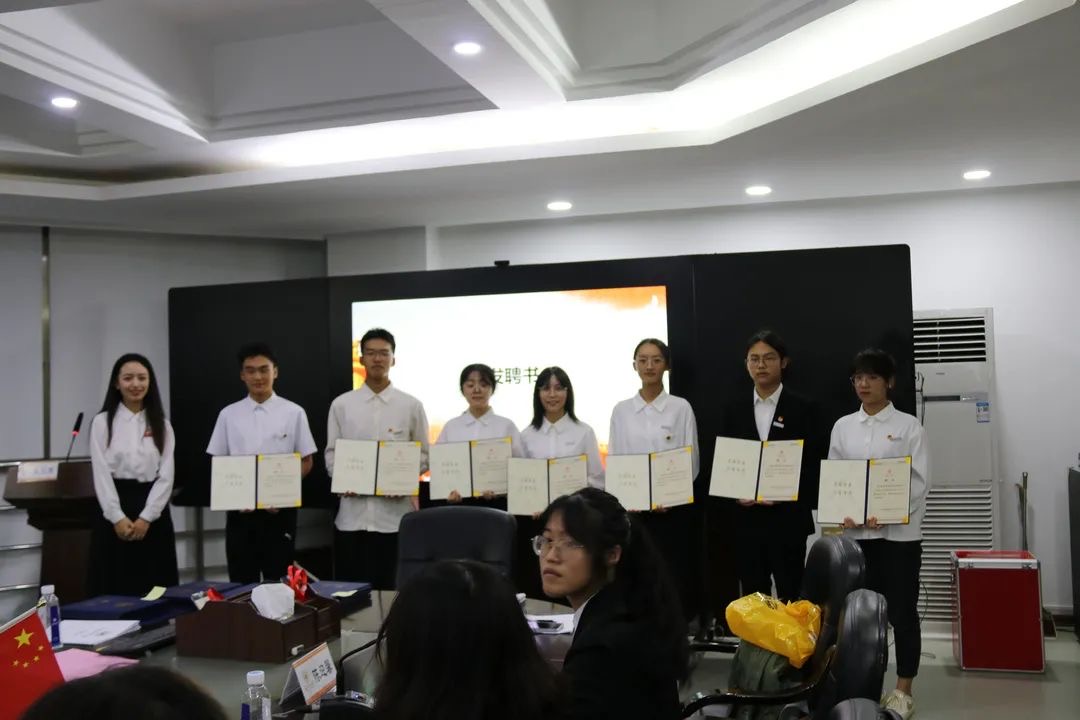 随后,在场成员依次进行了自我介绍,曹开秋老师、黄澜老师为新一届团学成员颁发聘书并合影留念。