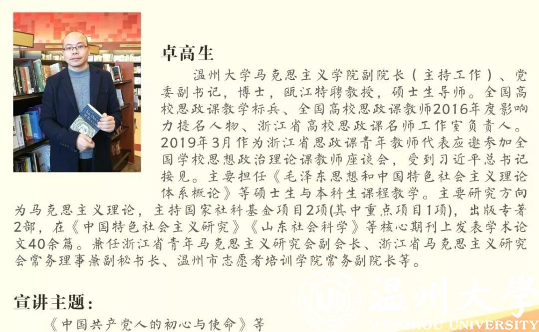 “不忘初心、牢记使命”主题教育讲师团:卓高生