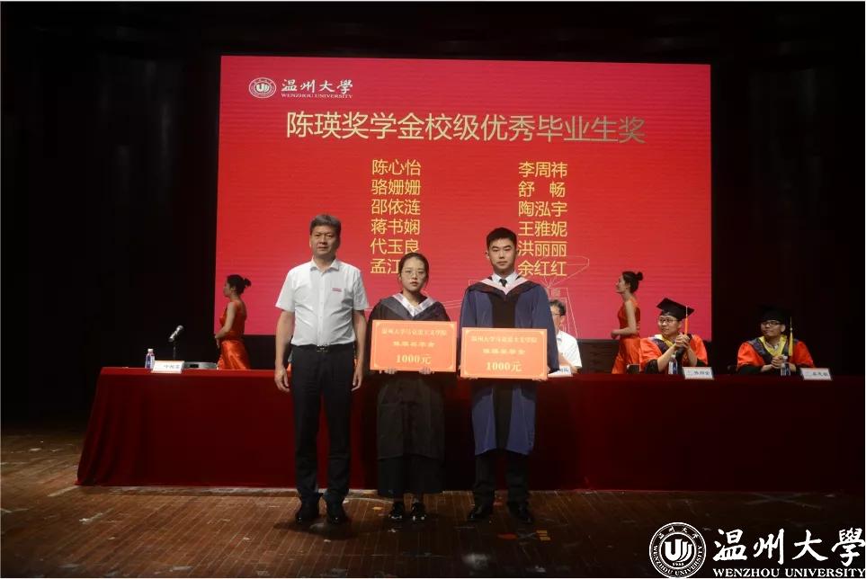 在2020届毕业生即将毕业离校之际,十大体育博彩排行榜 在温州大学南校区音乐厅举行了首届陈瑛奖学金颁奖仪式。受陈瑛校友委托,校党委庄兴忠副书记为获奖学生颁奖。颁奖会由十大体育博彩排行榜 党委副书记叶柏霜主持,十大体育博彩排行榜 党委书记王柏民在会上宣读了获奖名单,十大体育博彩排行榜 院长卓高生、副院长孙邦金、吴志敏和部分师生代表及全体毕业生出席了颁奖会。