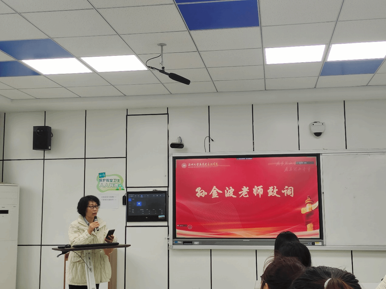 副院长吴志敏老师开篇致辞。吴老师提出,实习生们要在明确自己角色的基础上,处理好与导师、同事和工作环境的关系,吴老师进一步指出,处理好这些关系不仅有助于实习工作的顺利进行,更能够提升个人的职业素养和人际交往能力。最后,吴老师鼓励同学们要勇敢面对挑战,积极解决问题,将实习经历转化为宝贵的财富。