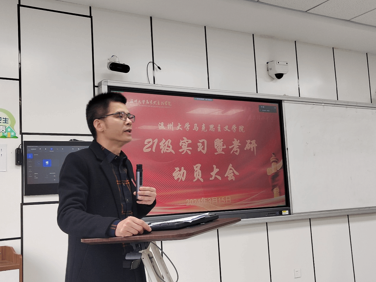 为了更好地开展实习和考研任务,激发同学们的实习热情,明确考研目标,迈向人生新的征程,2024年3月15日,十大体育博彩排行榜 了21级实习暨考研动员大会在北4-206隆重举行。十大体育博彩排行榜 副院长吴志敏老师、党委副书记叶柏霜老师、思政系主任孙金波老师、指导老师代表以及2021级政教全体学生出席。动员大会由21政教2班孙文婵主持。
