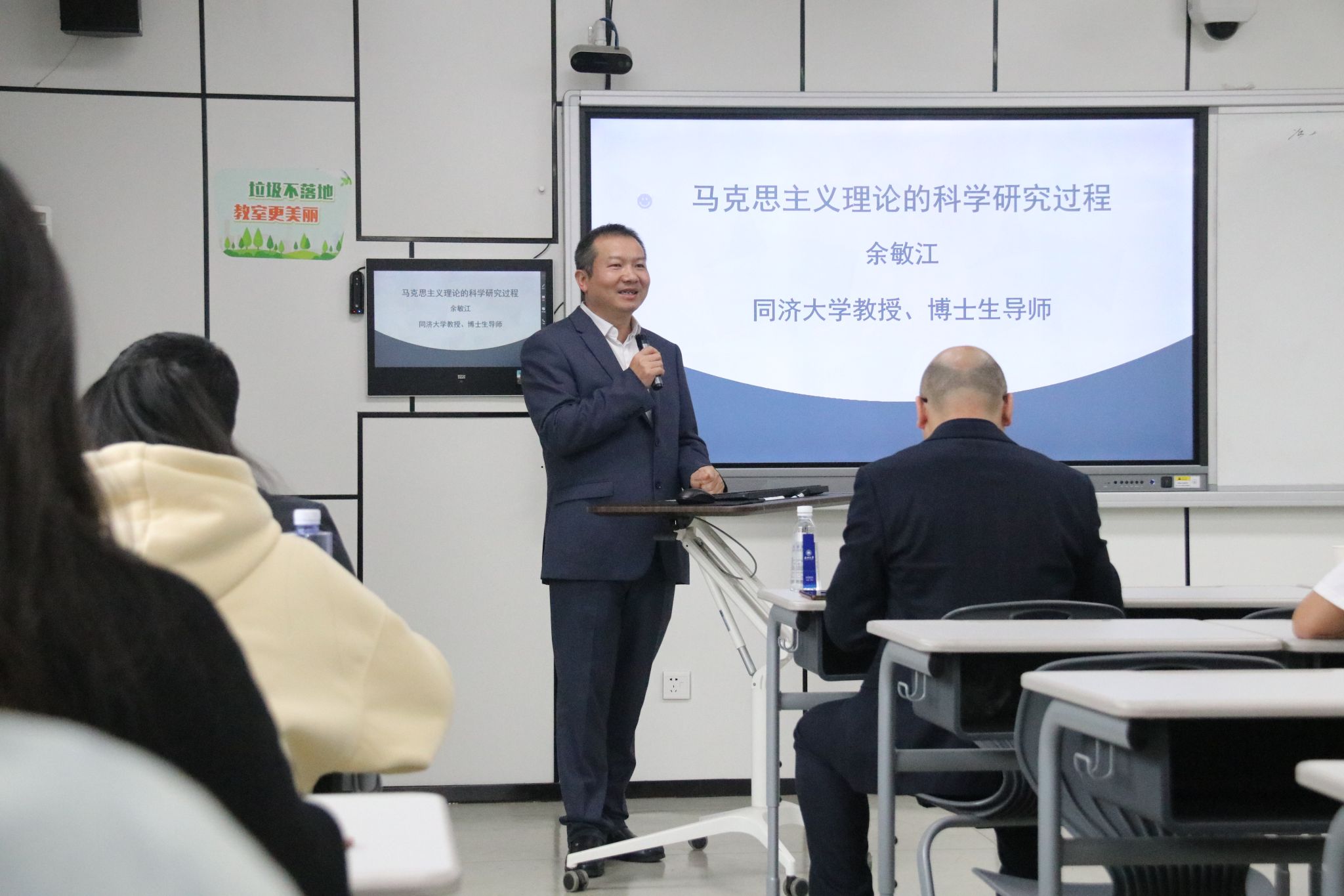 余敏江教授跟大家分享的话题是“马克思主义理论的科学研究过程”。首先,余敏江教授向大家阐释了科学研究是继承与创新的过程,是从自然现象的发现到技术发明的过程,是从原理到产品的过程,是从基础理论研究到应用研究、开发研究的过程。其次,余教授对同学们的科研做出了指导,希望同学们在做马理论科学研究题目时应该做到前瞻性、战略性、全局性和创新性,并且还要做到研究材料、研究方法与研究视角等方面的具备特色。最后,余教授指出,一篇好的学术论文可以从激情、方法与技艺三个角度来评判,这三个角度也分别是一篇好论文的天线、中线和地线。所谓激情,就是能够展现出作者的好奇心、使命感和洞察力,能够提出触及灵魂的好问题,选题有趣且有用,文献综述层次分明,评价得当,理论解释符合常识又高于常识。所谓方法,就是指论文的研究设计精致巧妙,方法科学得当,提出假设新颖而不造作,数据资料真实有效,验证过程多维交叉。所谓技艺,就是在写作技巧上谋篇布局清晰,写作文字流畅,语言风格清新,让人读后觉得有美的享受,产生余音绕梁的回味感。
