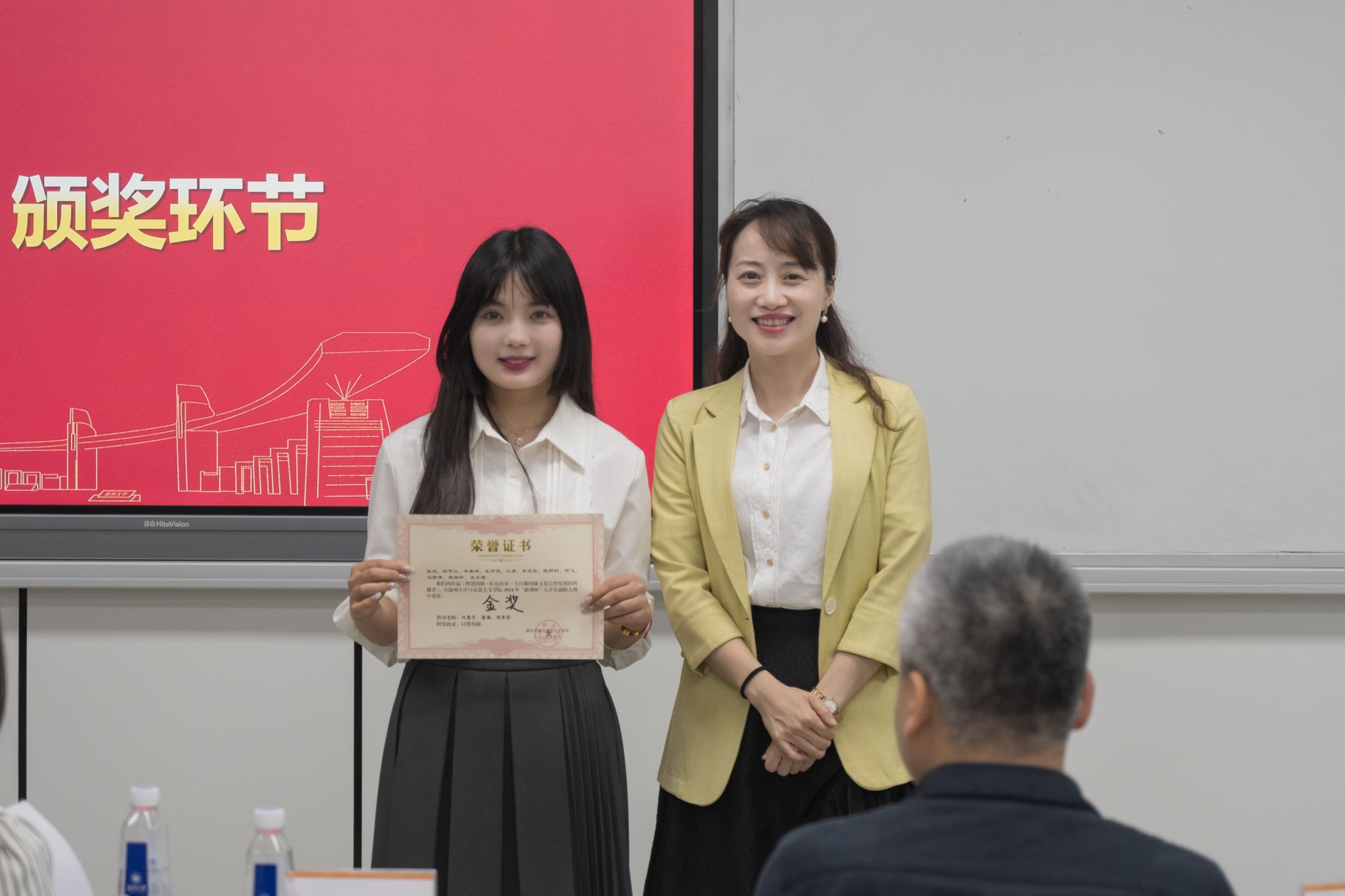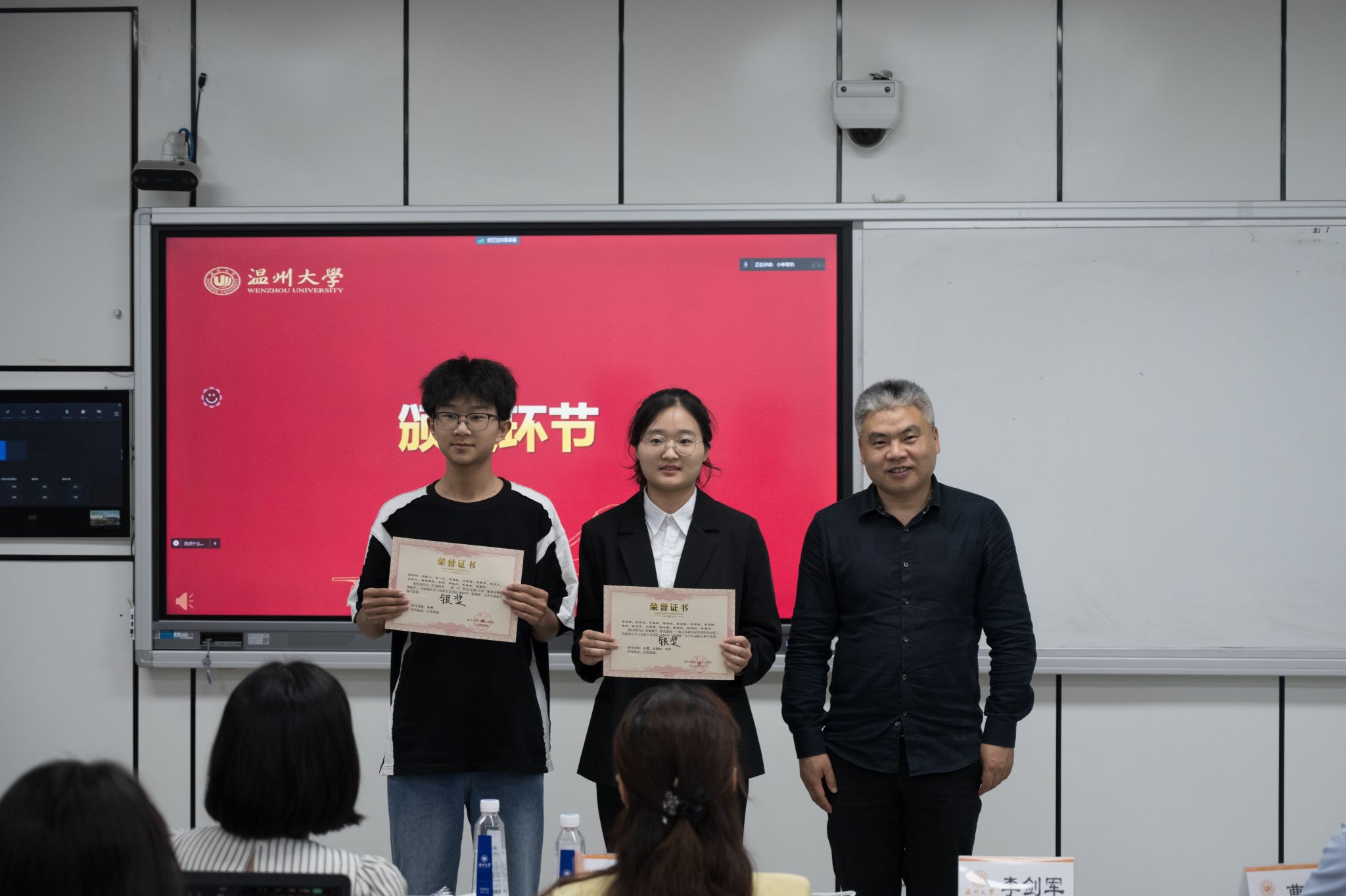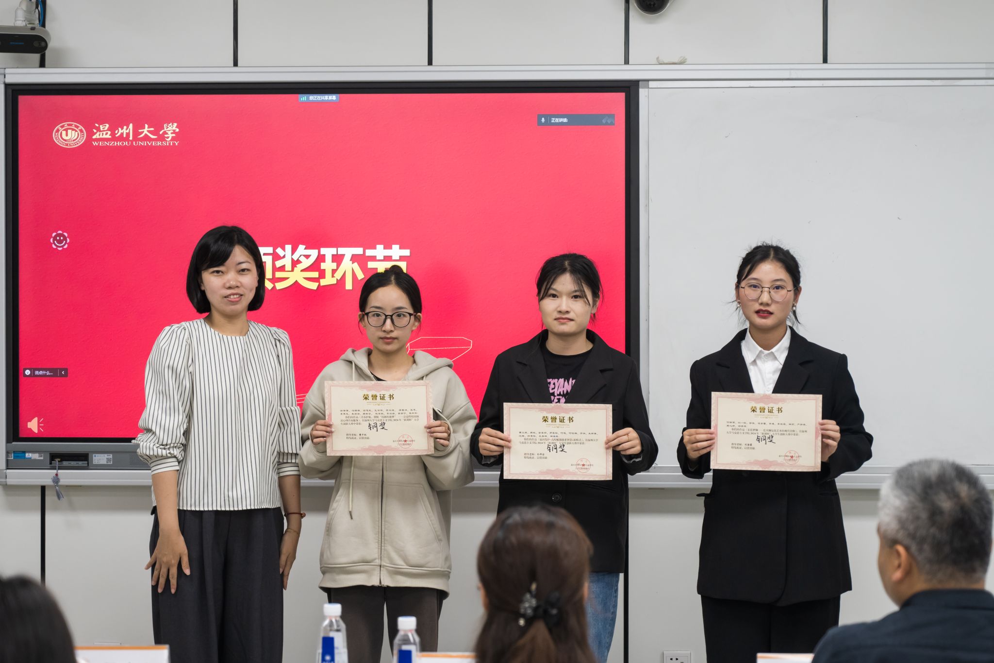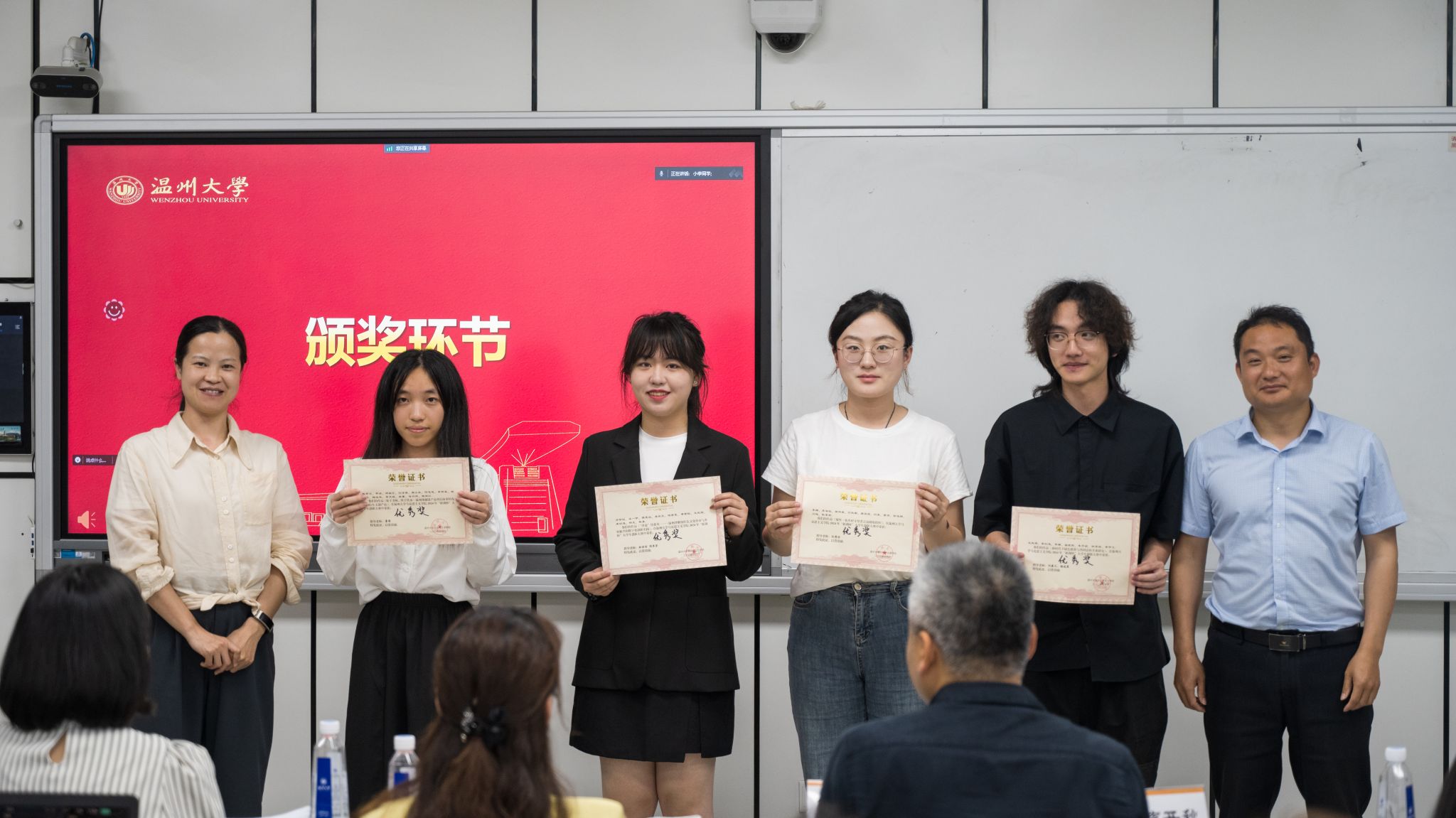 几位评委老师依次为获奖选手颁奖并合影留念。