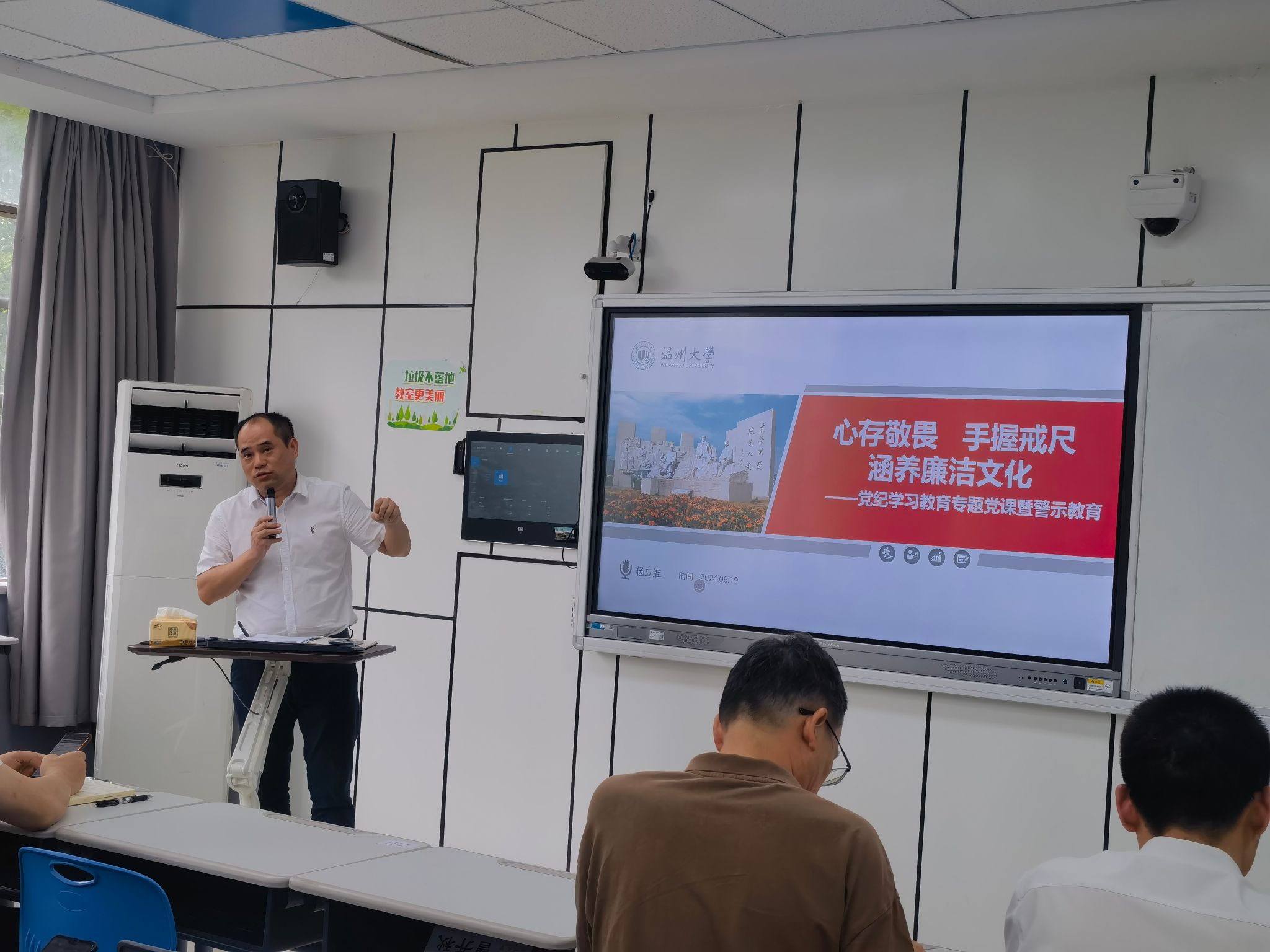6 月 19 日,十大体育博彩排行榜 举行了党纪学习教育专题党课暨警示教育活动。十大体育博彩排行榜 党委书记杨立淮同志为全体教职工作题为《心存敬畏,手握戒尺,涵养廉洁文化》的专题党课。