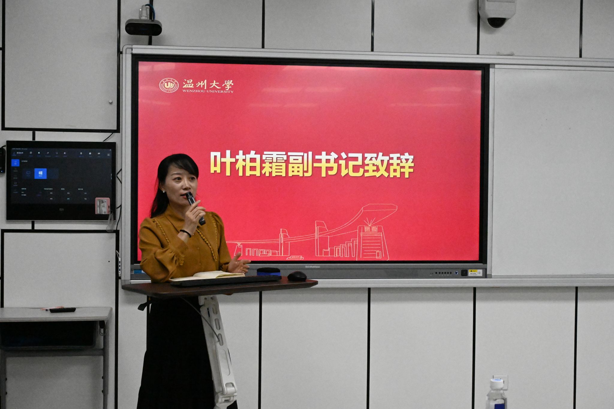 会议伊始,十大体育博彩排行榜 党委副书记叶柏霜老师致辞。叶书记在讲话中表达了十大体育博彩排行榜 领导和老师对于本次挑战杯比赛的重视,希望能够通过比赛助力搭建师生共创平台,期待这次的参赛选手能够赛出体育博彩风采。