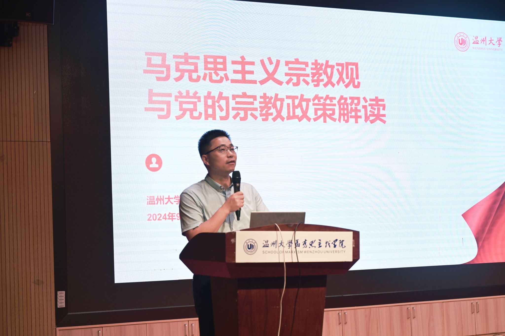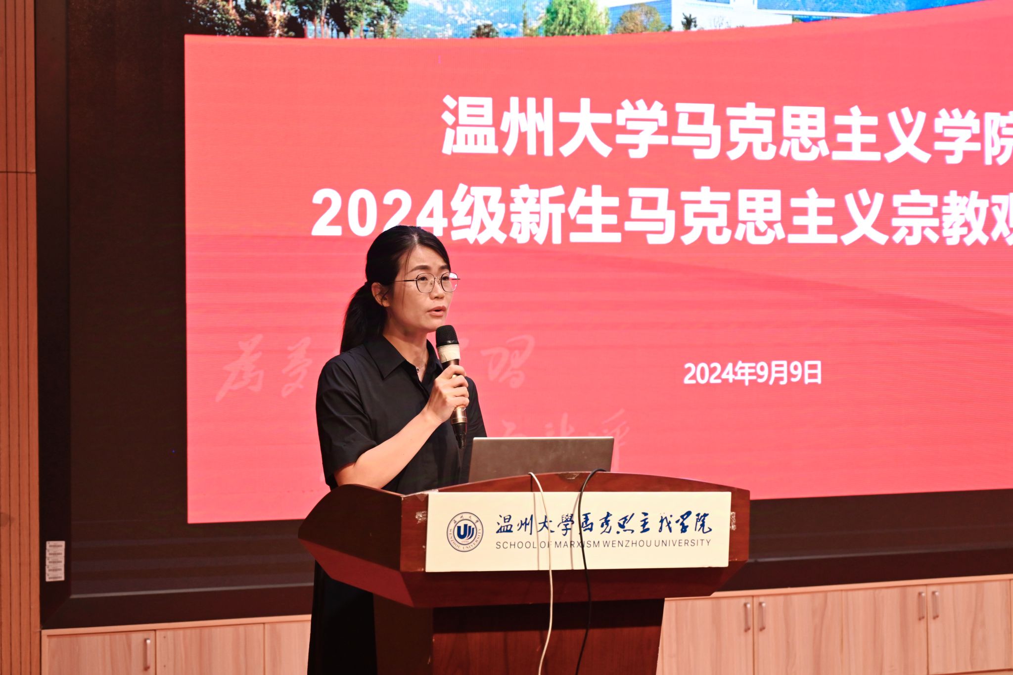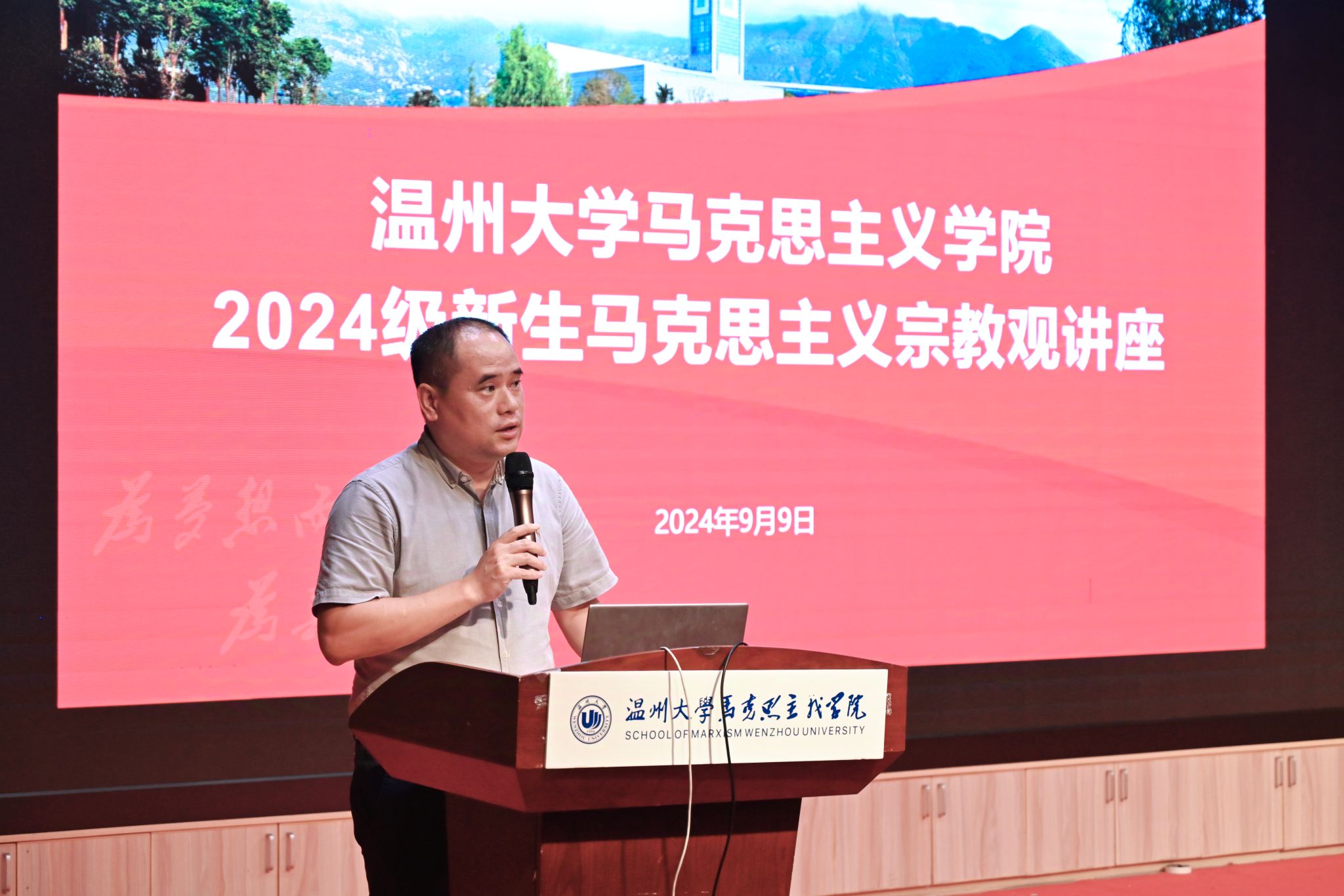 为深入贯彻党的宗教工作基本方针,引导学生坚定理想信念,筑牢马克思主义宗教观,9月9日晚,十大体育博彩排行榜 在北4音乐厅举办2024级新生马克思主义宗教观讲座。本次学习由院党委副书记吴冬冬老师主持。