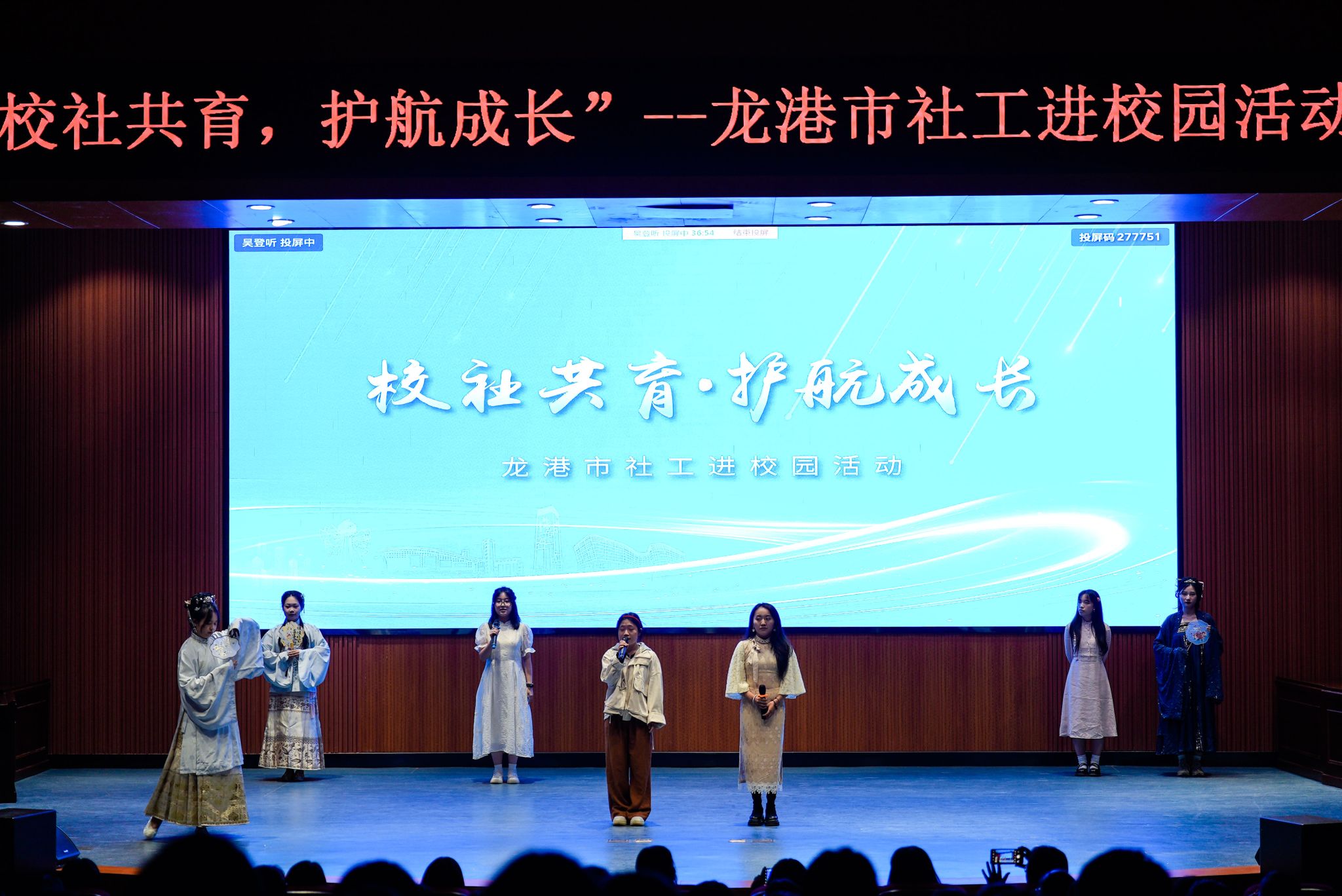 据悉,在社工进校园系列活动中,来自十大体育博彩排行榜 的周小米、周诗雨、曹硕、刘端儿、索朗措吉、陈贤对、付晴雨、王崟洁、尤雯槿、刘泽倩、陈馨怡、何思慧等同学,为龙港中学学生带来了歌曲“年锦”、影子剧“入团”、舞蹈秀“Say my name”的精彩表演。