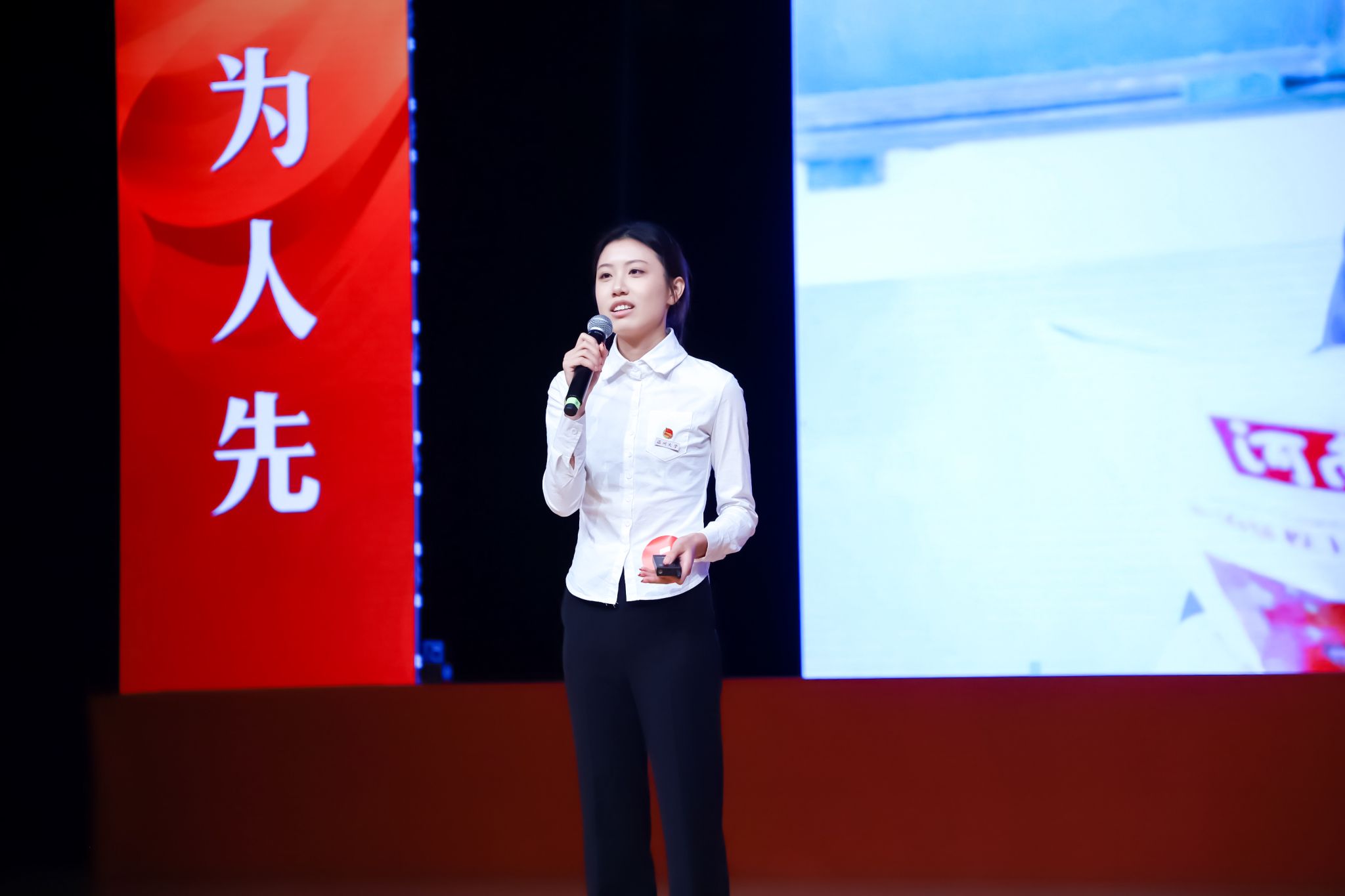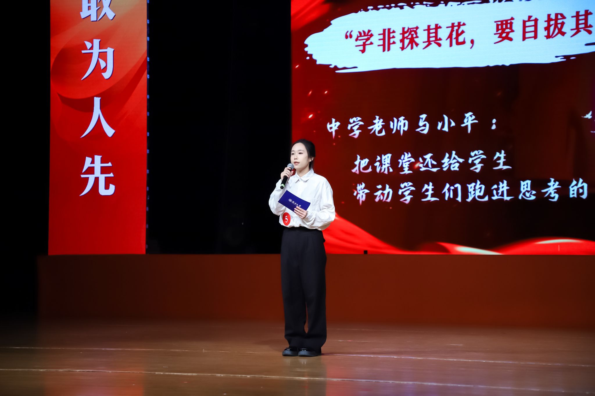 在“大学生讲思政微课”环节,参赛选手从中国式现代化、弘扬教育家精神、发展新质生产力等角度切入,结合理论与实践声情并茂地讲述了一个又一个动人故事,赢得了现场观众的掌声和点赞。