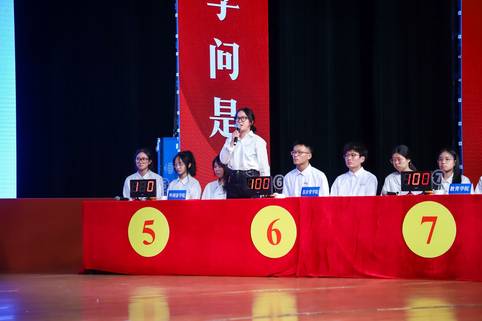 抢答分秒必争,思维火花四溅。“中国式现代化的基础性、战略性支撑是什么?”“全面建设社会主义现代化国家的首要任务是什么?”知识竞答环节中,各代表队的参赛选手以清晰的逻辑、扎实的理论基础从容作答,展现出新时代青年大学生团结向上、奋勇争先的精神风貌。