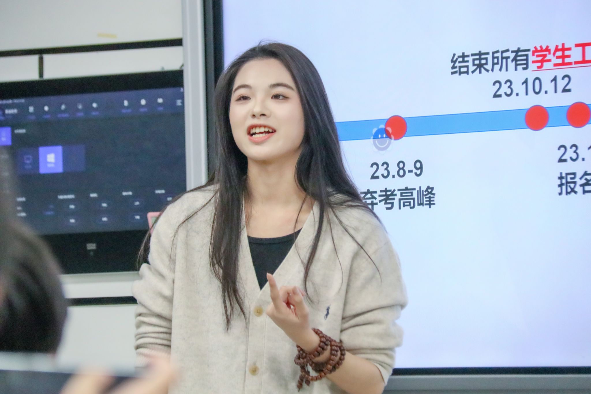 黄思璇学姐从规划、学习、工作、生活四个方面分享了自己的学习生活经验,她希望同学们可以规划每日任务和大学生涯,多阅读老师推荐的书籍,注重课堂表现,平衡学习和学生工作,多多尝试,过一个有意义的大学生活。